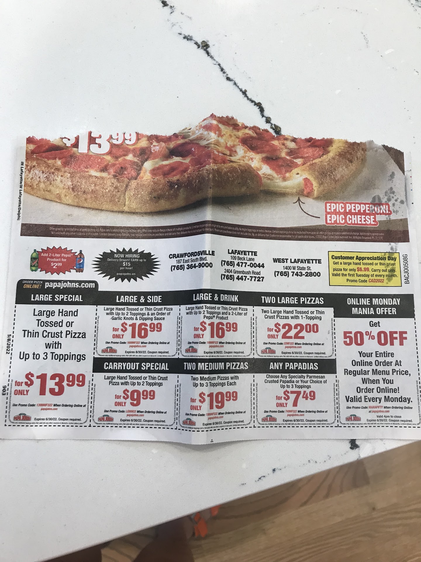 Read morePeople complain about why is it taking so long or just be rude towards the staff and the drivers. They are the busiest Papa Johns in Indiana, let alone the Midwest. The management has done an amazing job with keeping up with all the orders even when it says online that it is not busy when it really is. They might be short staffed who knows, but they try and they have been helpful when it comes to contacting me if it going to be longer or even given me discounts the next time I order and they didn't have too. The guy with the long locks who I think his name is Ben. Thank you for telling me that I dropped a 20 dollar bill when I was walking out with my order and holding the door for me back in 2016. Honest people and very sweet drivers! Papa Johns Purdue West you...