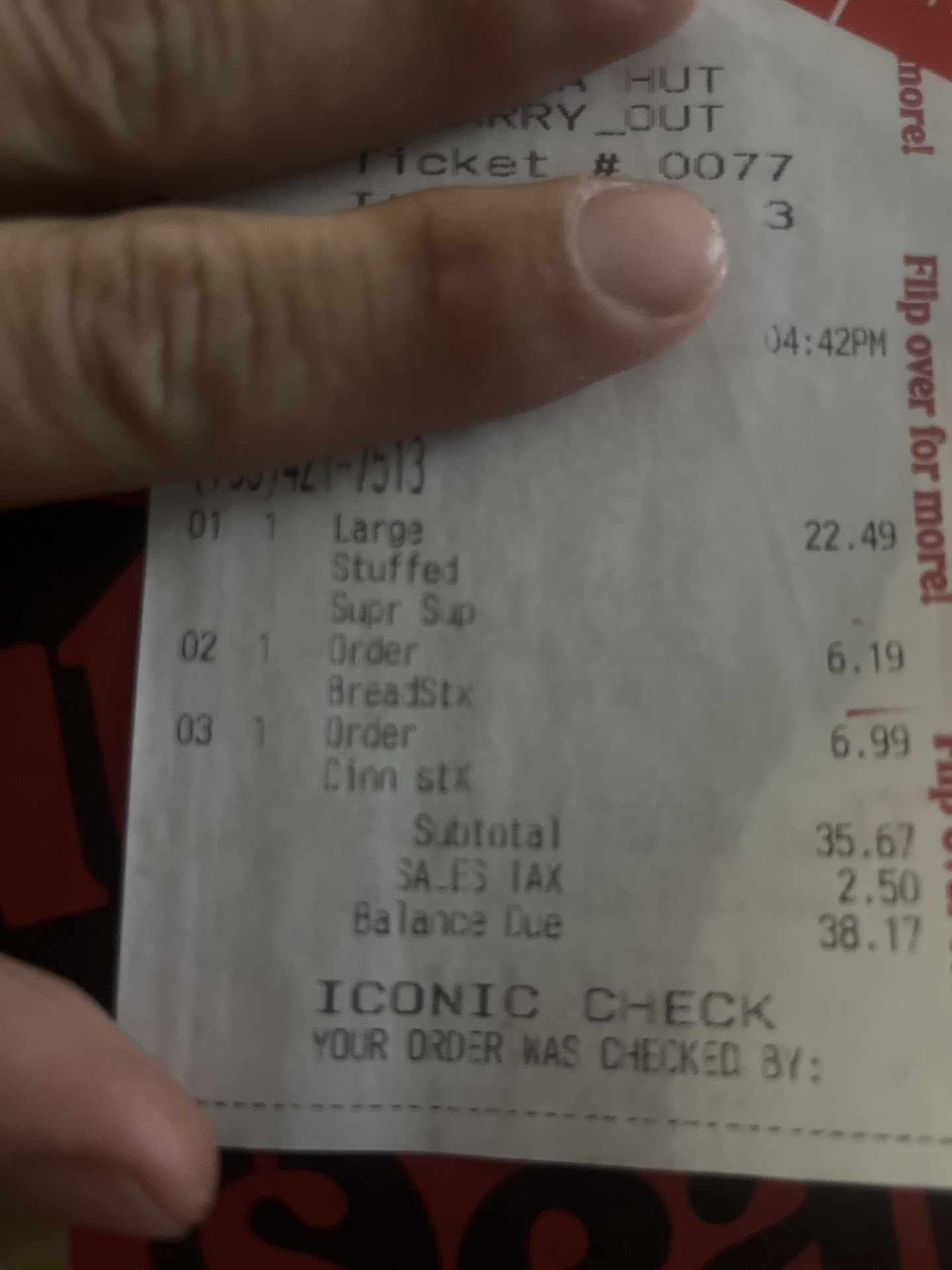 Read moreFood was really good hot and fresh, probably some of the best boneless chicken wings I've had in a long time and the cheese sticks I had was really good, the only issue I had was the waitress had brought my ticket to me right after I took the first two bites of my food and asked me if I wanted to go boxes, I felt like I was being rushed out the door, I explained to the waitress that I do Google reviews and I was basically telling her to leave me alone so I can enjoy my dinner, then I felt bad about afterwards and I called her back there and explained to her that I understand that it's her third day and I'm not going to give her a bad review, but however This falls on store management, this young lady is afraid she's going to miss her ride because her replacement is running late, management needs to train their people to actually show up to work, beyond that I love the atmosphere of this location it reminds me of the old Pizza Hut's back in the day from the 80s and 90s, they need to bring back the jukeboxes to complete the look...