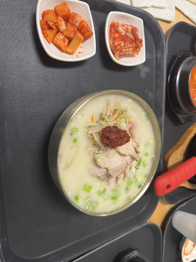 The Bossam combo (보쌈정식) is a dish served with a side of Kimchi soup, rice, and sliced pork belly broiled to infuse a mellow and pleasant taste of pork while removing...
