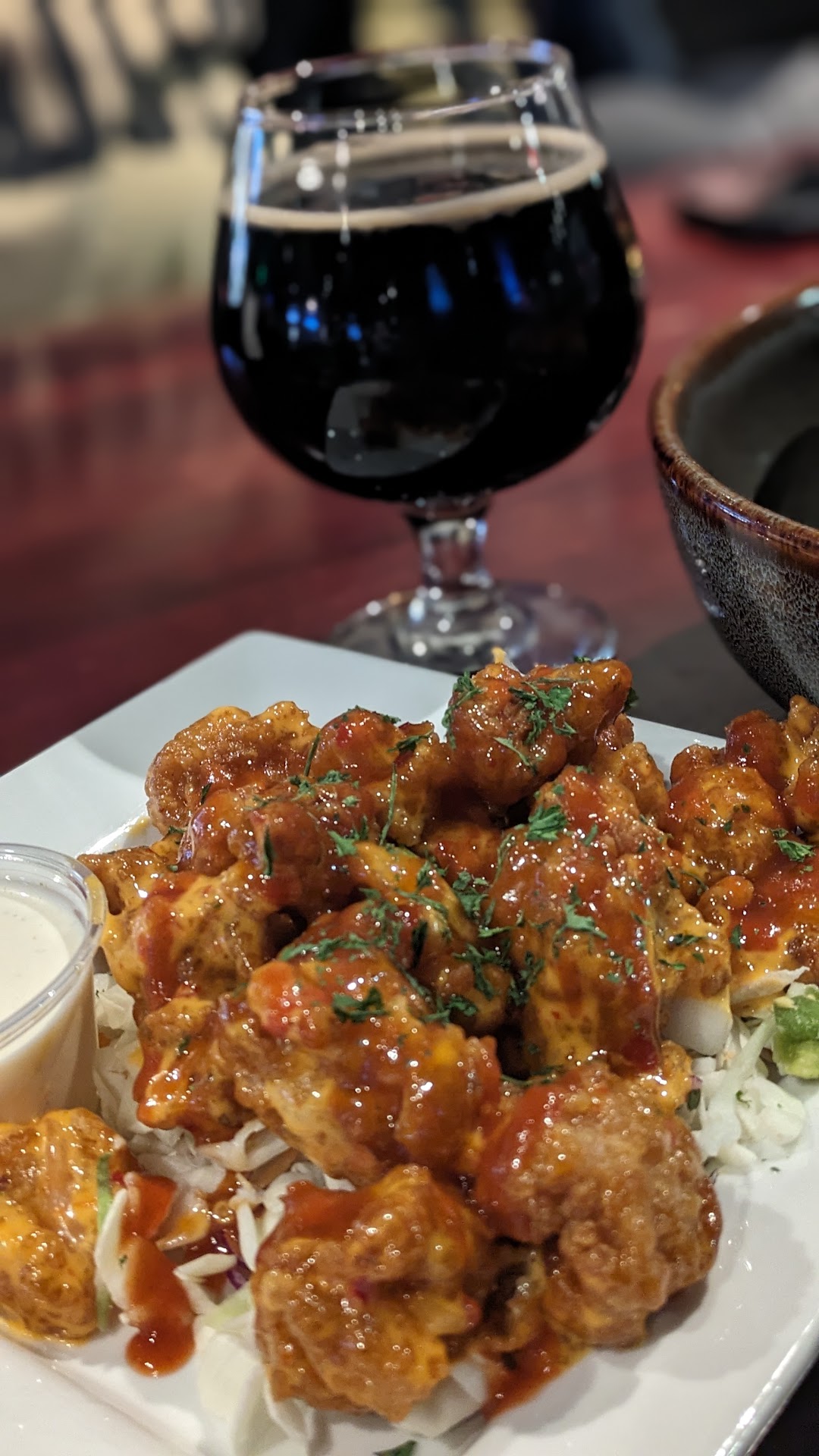 We ordered two appetizers, the Buffalo Cauliflower and Curds and the Firecracker Shrimp. Unfortunately, the Firecracker Shrimp was not as good as my daughter has experienced in the past. She loves this dish and gets it whenever she goes here but this time it was not very good. The Curds and Cauliflower was good but had very little buffalo sauce. The Curds had a really great breading and flavor even though the cheese was a but chewy. It is really hard to find that balance in a cheese curd with the type of cheese and the breading/flavoring in the coating. I would definitely try both of these dishes again.
