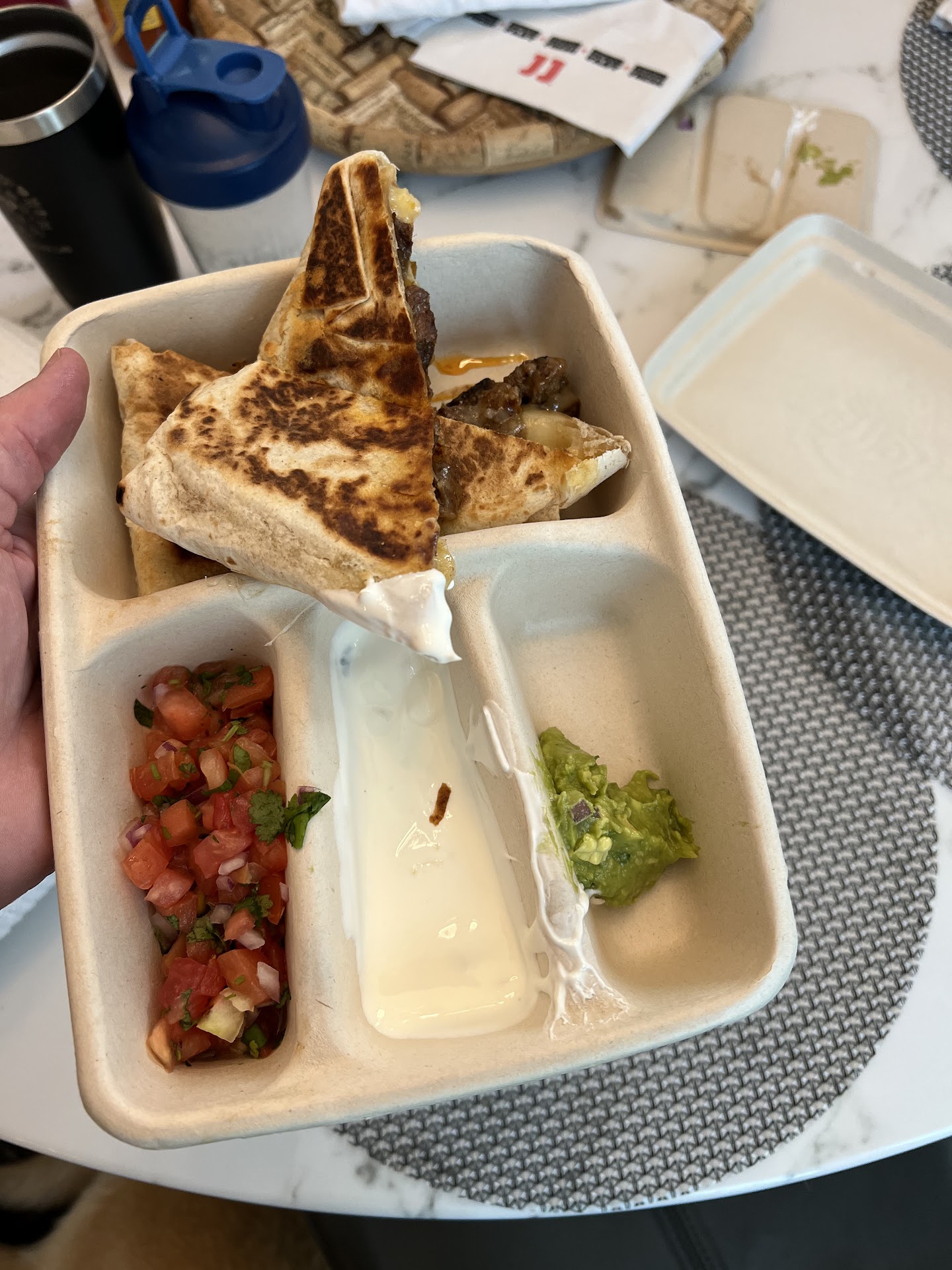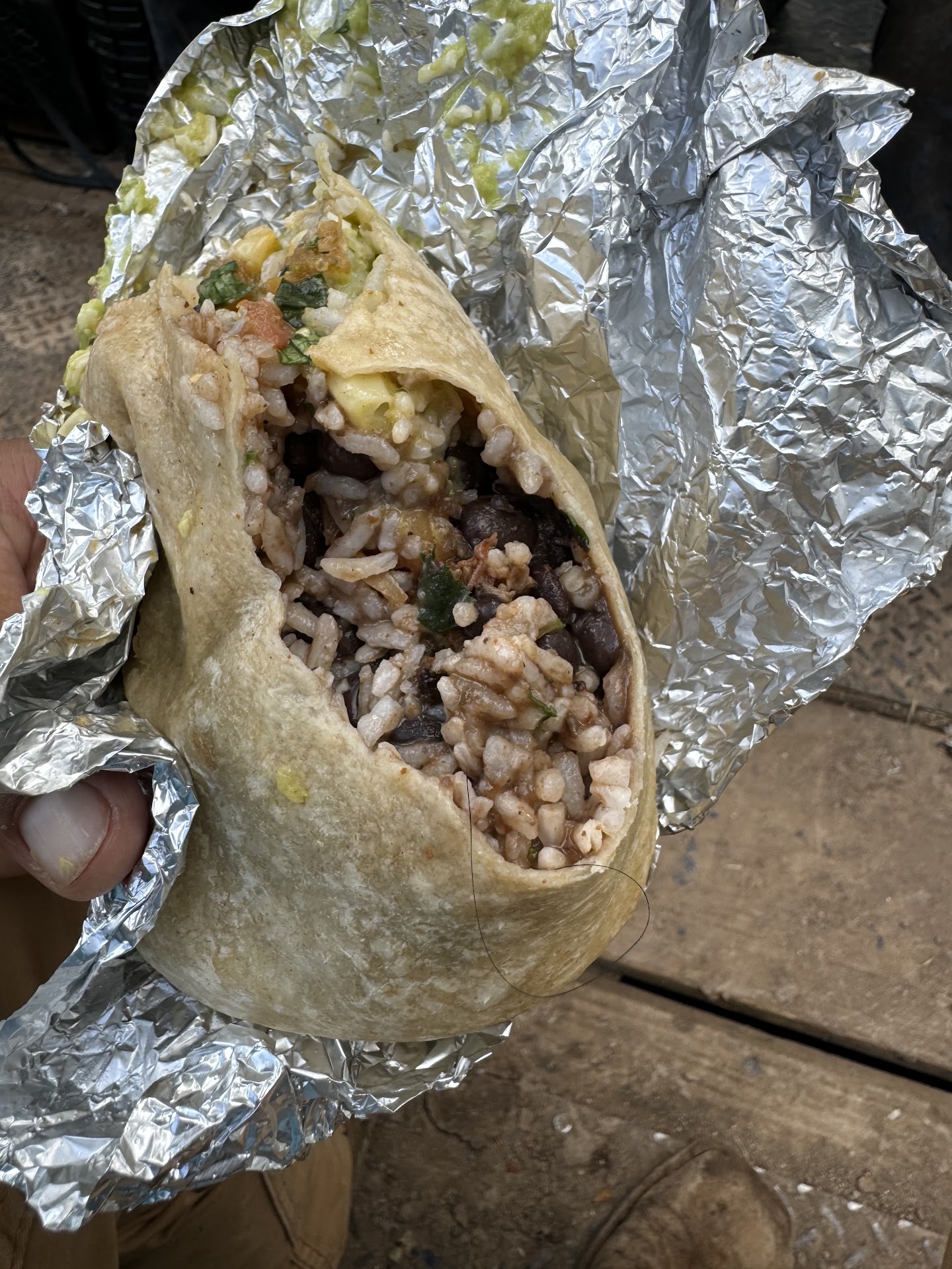 Ā Ā Ā Read moreOrdered food on the app. Went in, and it was ready! Fantastic! Unfortunately, my son decided after the app order that he wanted a burrito too. One would think, "No problem!" We'll walk in and grab one quickly to go. FAT CHANCE THERE! There was only one person in line, so I got excited, thinking I'd be out of there in a jiffy. The service was super slow for her, but I was patient and didn't roll my eyes once! After what seemed like forever, it was my turn! I rehearsed what I was going to ask for at least a dozen times, and I was READY! Well, unfortunately, they weren't ready for me. I silently watched as the worker started grabbing app order receipts off the wall. He began making the app burritos as I stood, less than 2 feet in front of him, staring at him. He did not acknowledge me whatsoever. Now here's the kicker--a second worker came over, "My savior!" I thought. Yeah right! She grabbed a receipt and started making an app order. Ugggh, the eye rolling started and I debated whether I should just leave. I waited for each of them to make 2 orders. Finally, I gave my order and was able to leave the store 16 minutes after entering. For ONE BURRITO. The burrito I was present for was good. The burritos we ordered through the app were loaded with rice and had hardly any steak. Disappointed bc we used to have such great experiences at our Chipotle back...