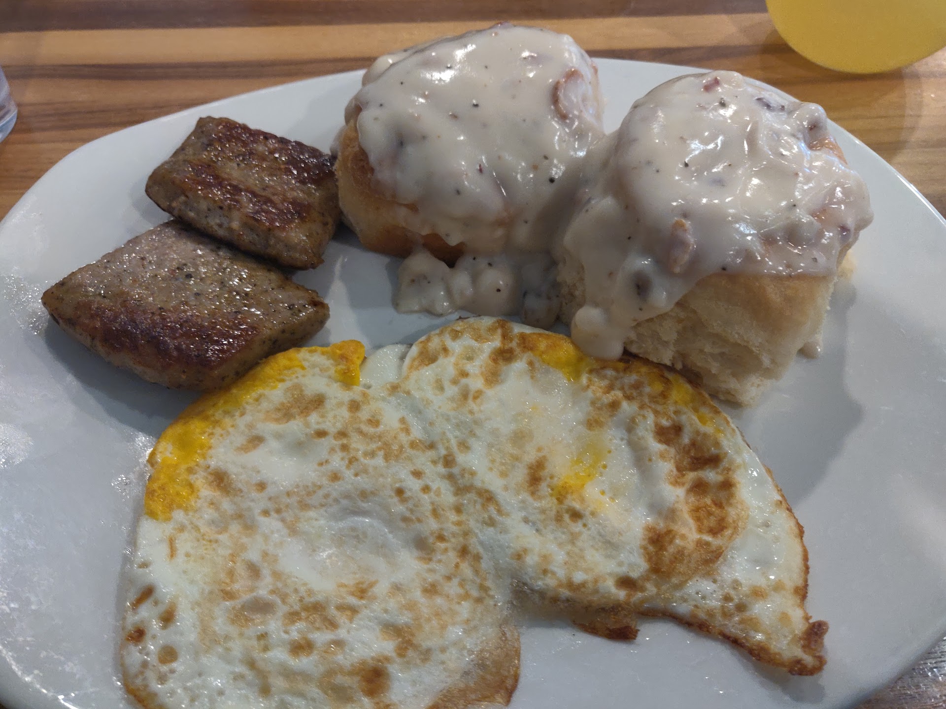 Read moreBeing from the east coast, this was my first visit here and I was pleased. Took our family of five and arrived at 1 PM . We had called ahead to get on the wait list as there is often a line during busy times, and we got right in. Pleasant efficient staff got our orders quickly and everything was correct as ordered. Extensive attractive menu for breakfast and lunch indicates I will have to return several times to try the items I would like to sample. I had the double cheeseburger with fries and it was very tasty - wagyu beef, a fresh toasted brioche bun and a special tangy sauce made it a large great lunch. The wife had avocado toast with a nice egg on top - very attractive plating and tasty. My son had a Cobb salad with avocado and his wife had a harvest omelette with tofu and she liked it. Each dish was fresh tasting, attractive and reasonably priced. This particular restaurant has ample seating, disability access, and plenty of parking and is also located in a shopping center where you can batch your other trips with a nice meal. Family friendly and there was a high chair available for our granddaughter....