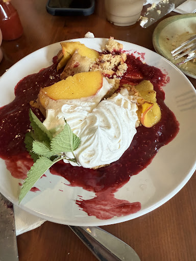 The peach desert we were presented with was also incredible. The perfect mix of the sweet peach, sour cherry, and rich cream made for a wonderfully balanced breakfast dish.