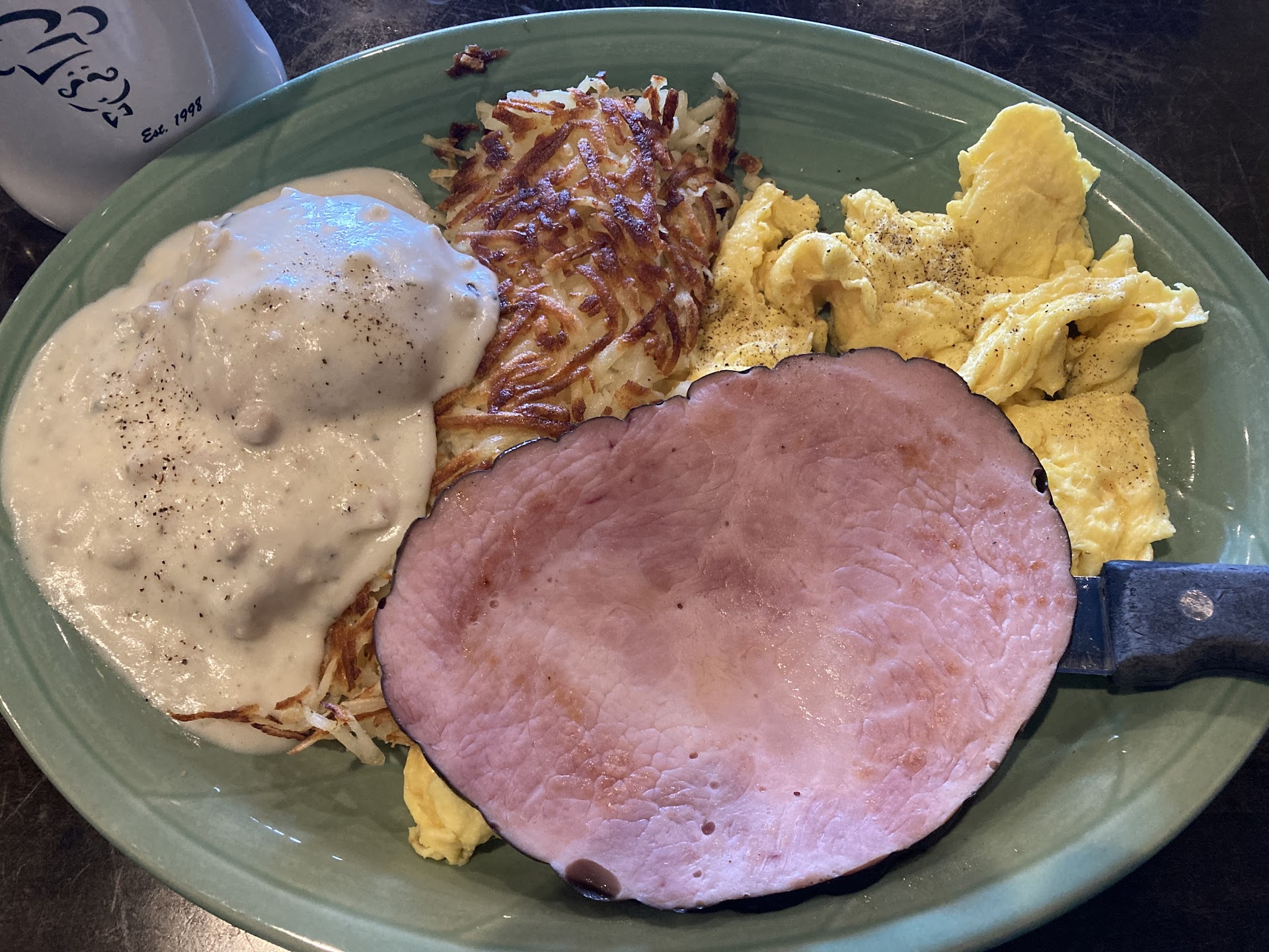 Read moreMy sister and I visited early on a Sunday morning. They seemed to be short staffed and the staff that was working was incredible but overwhelmed. I live locally this was my first visit AND will be my last. Sausage, hash browns and scrambled eggs, you wouldn't think it would be bad but in this case, you would be wrong. The sausage was woefully undercooked and oozed grease. The eggs were barely cooked and although there was a healthy serving, the hash browns had spices that were alright but overwhelming. My co-diner ordered Biscuits and gravy...nothing complicated but the sausage gravy tasted like pasty flour and the scrambled eggs were not fully cooked, just like mine. For somewhere that's touted as good, I will not ever cross their threshold again. Even to get a coffee refill was an arduous task, the coffee cup was never refilled. After waiting for 15 minutes, we decided to just bail and leave. Never again, a complete waste of...