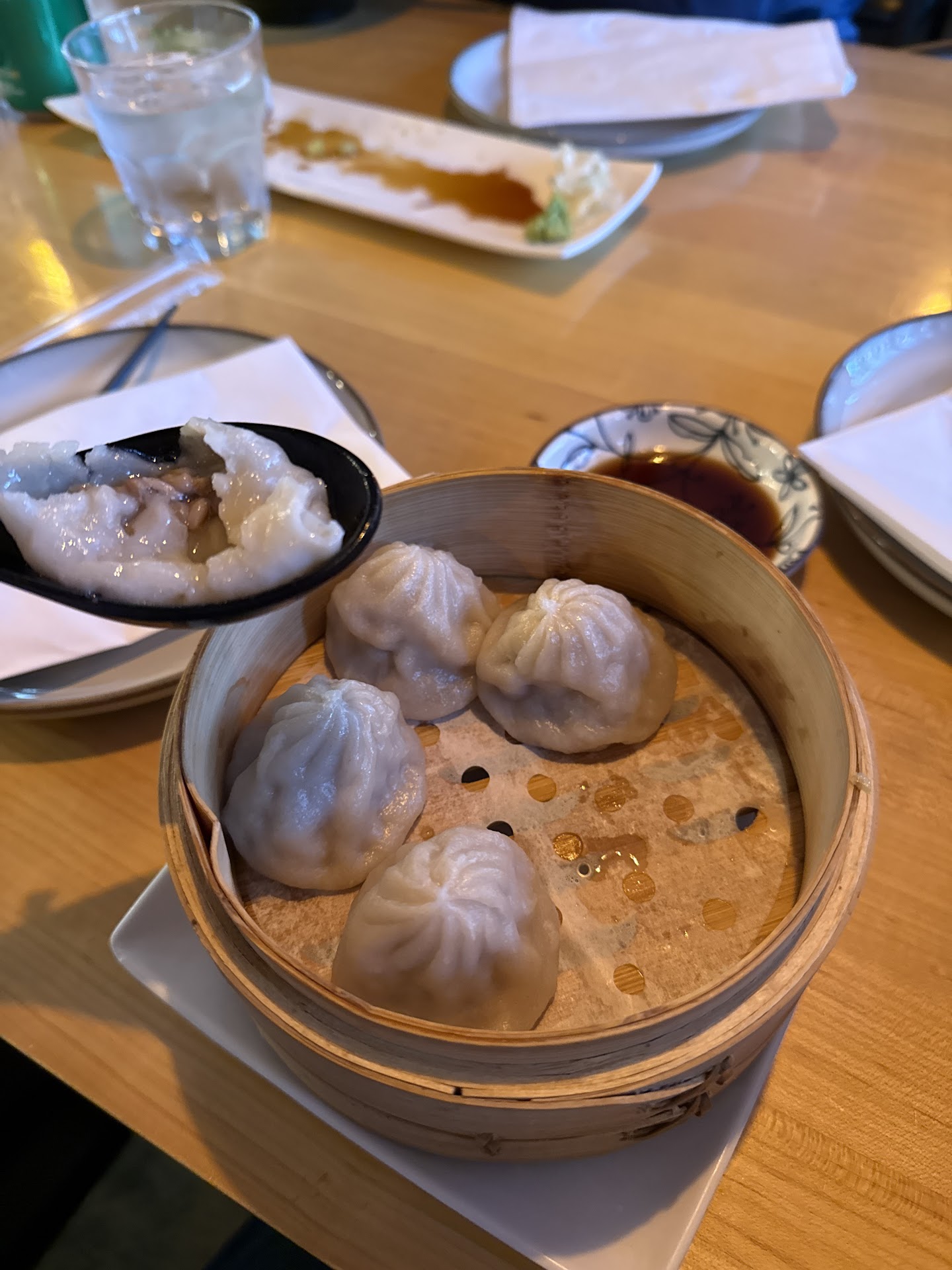 Read moreThis was a super disappointing experience. We were the only other group (3 people) besides a family of 6 that came in. The service was very slow, and we were only checked on twice. The waitress also wasn’t explaining that we had to go up front to pay. We asked to split the bill in half, and she just said I’ll change it and then left the table and didn’t come back. Our food was not good. My xiao long bao (soup dumplings) were congealed and cold, like they had been sitting. They also came out last, even though it was listed as an appetizer. My Thai iced tea was lukewarm, and tasted like old tea. My brother had the beef brisket noodle soup, and caterpillar roll. After 2 hours after eating, he became very ill. He was vomiting and very pale. I am not sure if it was the sushi or the soup that caused him to be sick. We will not eat here again. edit to add: I have been so incredibly sick today after eating this food yesterday. I have food poisoning that I had to leave...
