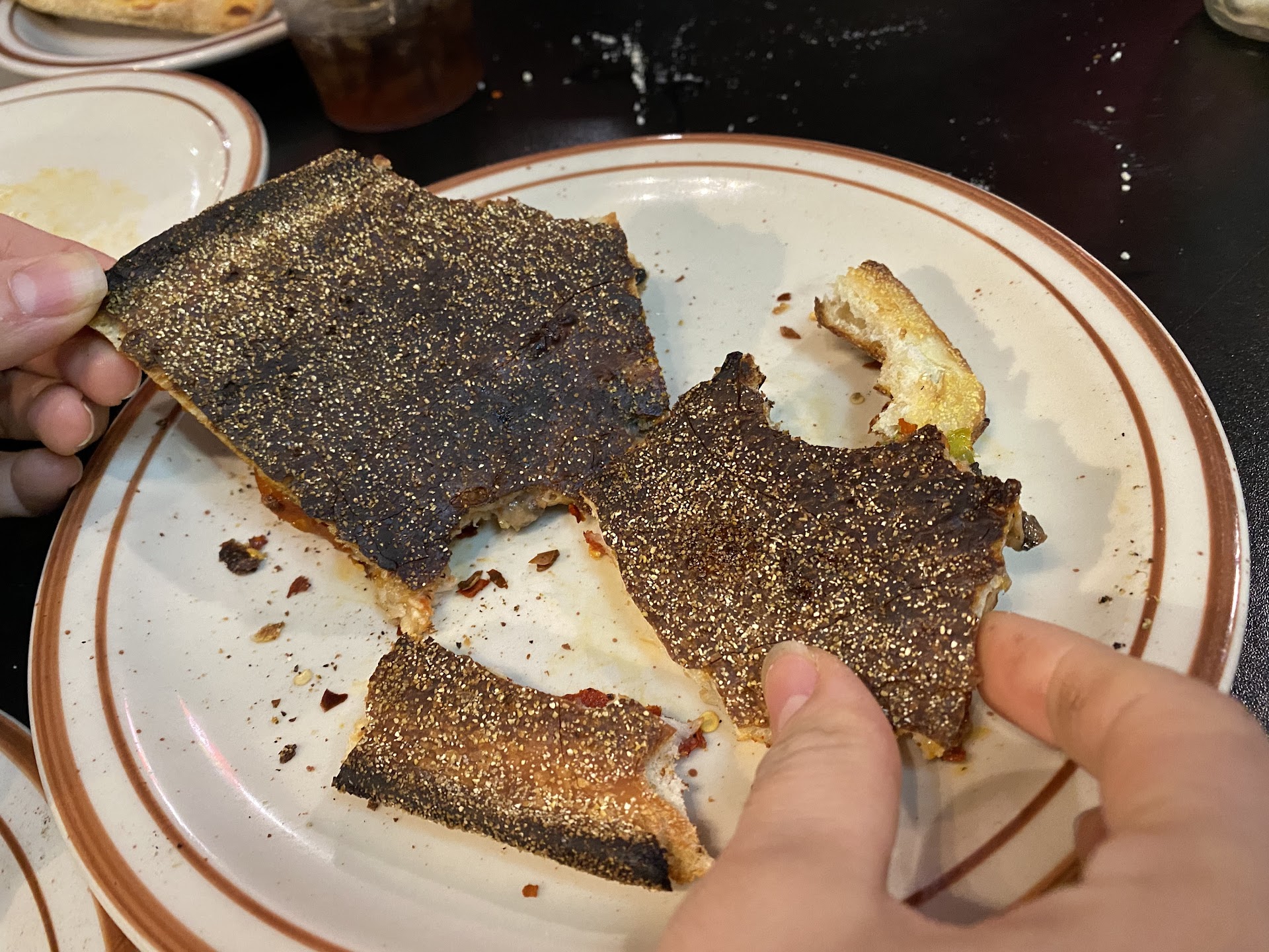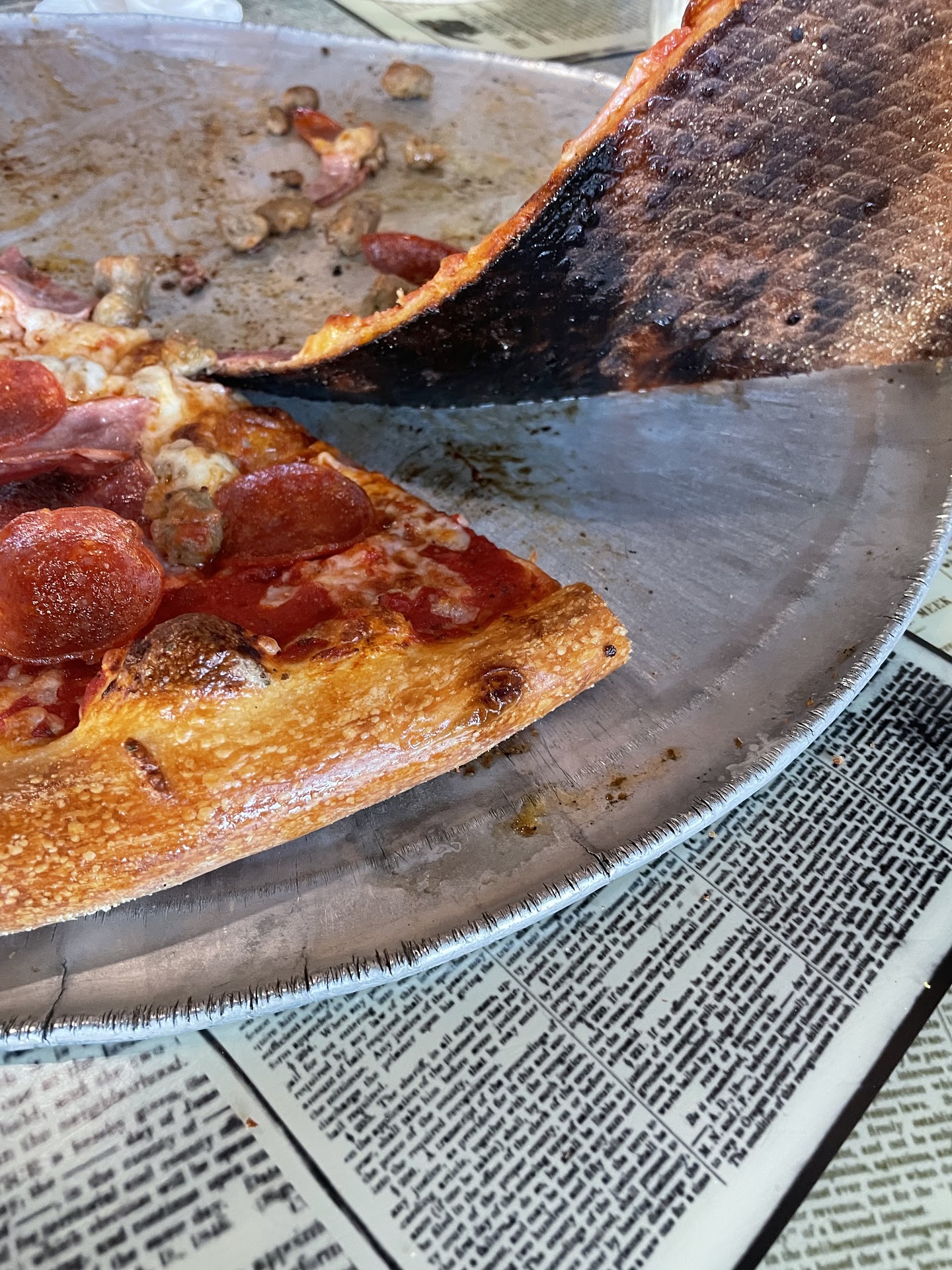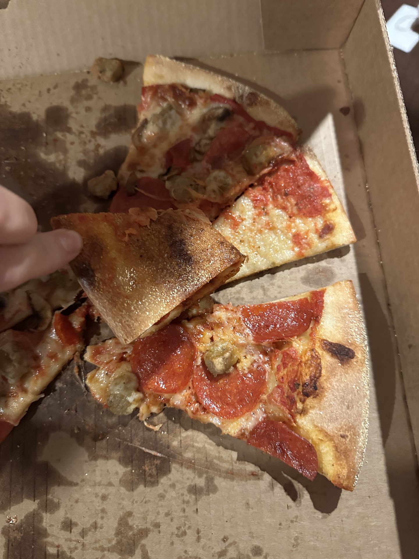 Read moreLast night on our way to the airport, we stopped here for a quick slice of pizza and a beer. Since we only had one hour to dine, we opted for a quick re-heated pre-made pizza. We were a party of 6. The only place to sit was a dirty table and the place was super cold inside. The front door was broke so the door was kept ajar which on a winter windy night was not pleasant having the cold draft and leaves blowing into the establishment. We order a pitcher of beer and fountain drinks. While we were waiting, many people came in and went out with their orders and we still waited. More than an hour later and after inquiring about our order since it was supposed to be a quick re-heat slices, they kept saying they are still working on it. The cashier person kept asking if we wanted the order to go and I kept saying no, it’s for here. Many people kept getting their full pizza orders and we were still waiting on a corner. I finally got up and stated why our order was taking so long since it was supposed to be quick, the cashier person then looked to his left counter and said that our order had been sitting there for awhile and if I wanted it for to go. I once again said no, it’s for here. He started passing us the slices that were sitting there which ere no longer warm, two more slices were missing so he then threw them in the oven. The pizza was cold, was hard, and had burnt crust. We were so hungry so we just ate what we could. I’m giving this place a one star but I will not recommend nor will ever go back...