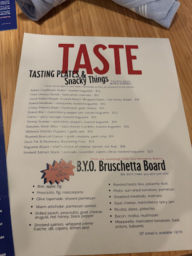 Read moreMy husband used to work for a boutique wine distributor in DC and worked with many high-end restaurants. He said Taste Wine Cafe's wine list is truly exciting. We took my husband's best friend (P) and his wife there for dinner. Combined, my husband and P have over 30 years of work experience in the wine industry. The three of them ordered several glasses of wine and enjoyed all of them.