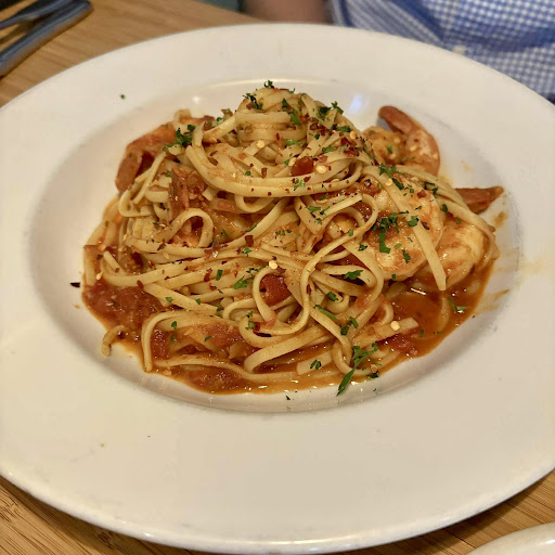 Another friend ordered a spicy prawn pasta it was way too spicyâso much that it was almost inedible. She likes spicy food, but this was overwhelming and lacked balance. As for the flat iron steak, it was small and extremely chewy, and not worth the price.