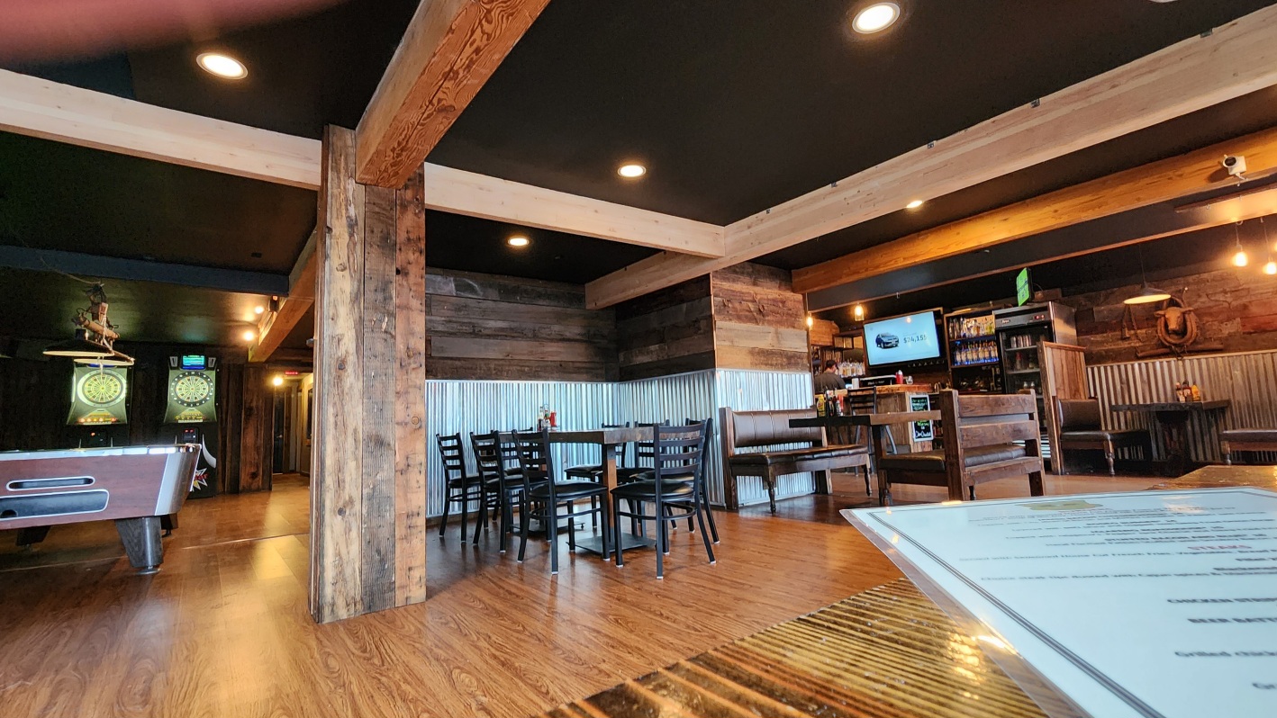 The place has a great atmosphere. There is a neat covered outdoor patio out back where you can hang out, drink, smoke, etc with tables, outdoor heating and even a fire pit of sorts. Food and drinks are good at this establishment. The regular bartender is amazing! She works so hard because they dropped staff over this last year and now she has to cook the food, tend bar and serve people in the front outdoor area, inside the bar and out back. She does a great job keeping up with everyone and has an amazing attitude and great customer service skills. The owner slacks on keeping the propane tanks filled and heaters serviced. I was surprised that he barely could be bothered to change out the tanks when the outdoor heaters ran out. He had to be asked multiple times by several people before he only turned one on even though 3 ran out and the table fire pit ran out too. I would understand if he was busy, but that wasn't the case and it is winter so they were needed. He gave the impression he didn't care very much about customer service. Other than that, it seems to be a...