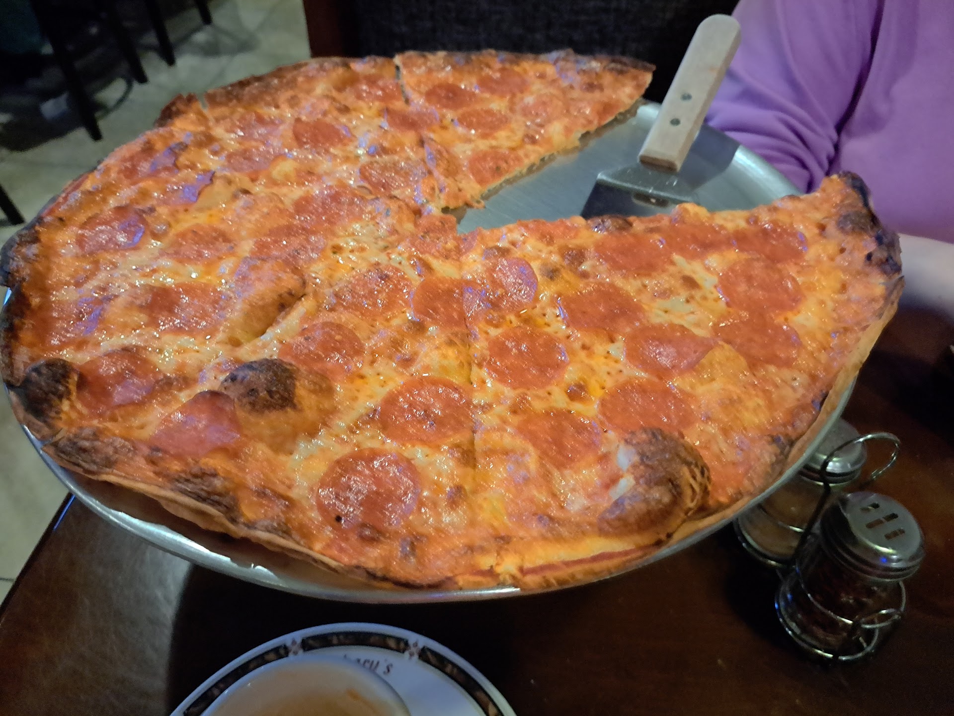 Read moreFirst time visiting Zachary’s. We went to visit a restaurant across the street and saw Zachary’s was PACKED on a Monday. We decided to see what the craziness was about. Staff was very nice upon arrival. We were given the opportunity to dine outside which we jumped on since the inside had a wait. We loved the deck as it had ample breeze, privacy and sun shades that made the experience pleasant. Once seeing the menu we realized why the place was packed. It was half off their famous thin crust pizza. And also prime rib special for $29.99. We ordered a pie to try and take rest home, my wife and I got the prime rib as we are always in search of good prime rib. My son ordered the chicken piccata and my daughter ordered a half portion Nacho. The pie: super thin, dark and crispy edges ( not burnt) undercarriage was a little floppy and the crust didn’t stay together for long. Cheese was good but needed more salt for our liking. Sauce was great as was the sausage and diced onions. I would order it again on a normal night to compare quality. The bread basket comes with soft rolls and pepperoni bread slices which was a great point of difference. The prime rib: huge portion, mixed veg on side was very over cooked and mushy but my broccoli was steamed and crunchy. (Opted for no potato) The cook on the prime rib was done very well and so was the seasoning. We ordered medium rare and it came out close to medium. But the cook was so good that it was tender and we weren’t bothered by the slight overcooking. My sons chicken was a decent portion and he said is was just ok. Side salads and soups were all very good. Now the nachos: our least fav of the night. under top layer was all crushed chips. Top layer was very soggy and she needed a fork to eat it. ( not as fun with a fork) All in all we made a great decision to stop here instead of our original location. We will come back. Be aware parking fills up quick and we had to park around the block in the residential neighborhood. They do offer other weeknight specials so...