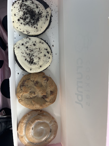 Ā Ā Ā Read moreThis place was recommended by friends and it was our first time ordering. We entered into the Crumbl shop and it smelled like heaven. Sweet and that oven aroma was just perfect so I was excited to try it. Ordering was easy as there are only a few cookie flavors to choose from. Our cookies were ready pretty quickly in spite of several orders in front of us. Everyone seemed to be working very hard :) I would of liked a spot to sit down to try a warm cookie there but there no tables or rest rooms (strictly carry out) which is fine. I rated them 2 stars for several reasons. They are described as the best cookie or a gourmet cookie but, price of nearly 4.75 per cookie, I was expecting better. Now the cookies are a generous size and come out warm :) which is great. They are not the traditional cookie which sets them apart but it was not in a good way for me. The chocolate chunk cookie was not a tasty one. It was really undercooked (doughy), did not have that buttery taste a cookie should have. Honestly, I make decent chocolate chunk cookies at home for a fraction of the price. I tried the pumpkin with cream cheese frosting. It's more like a cake than a cookie. It tasted okay but just was not wowing me. Next tried a little of the mystery flavor of the day pineapple upside down cake again more like cake. I have to say this one was pretty good compared to the other two. The next day I tried the oreo PB. This tasted more like a true cookie : ) This one tied for first with the pineapple one. All and all it was decent to try but...