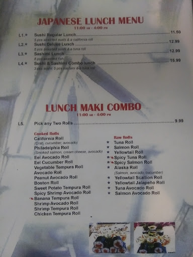 Ā Ā Ā Read moreStopped here on the way home to fl from sugar mountain.this is the worst place we ate at on our entire week winter vacay. $70 for lunch for 2 adults and 2 kids. The mushrooms soup tasted like nothing but pepper.we threw them away. Sushi was worst I have ever had. We got one chick and steak combo and it tasted like it had been cooked in the microwave or something and all very bland. The white rice was covered in pepper. The worst was they don't Give you any plates. We asked for plates and they gave my husband a to go box,just 1. For $78 give me some plates. I went back up to the counter and was given 4 of the containers they use for sushi. Also you have to be your own server. I literally had to write down everything we wanted and go to the front counter w my list. My advice...
