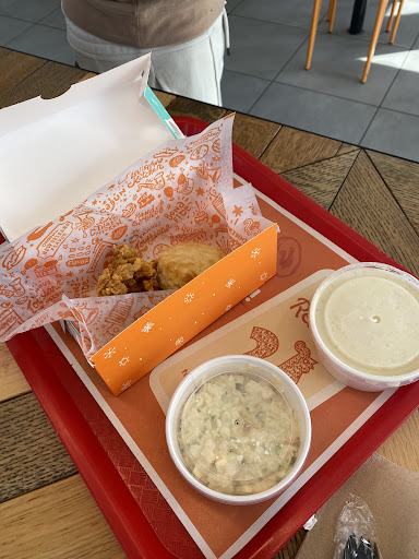 We get our order and itâs completely wrong. I had what looked like tiny nuggets, potatoes with no gravy and the lid barely fit. Chicken sandwich was cold, & no pepper. We brought it up to the front and they dumped the food and a lady started remaking the order. She only had one spicy leg and one classic. I said I would wait for fresh chicken so I could get spicy. We were in this restaurant about an hour waiting on our food only to get my husbands coleslaw that was terrible and they had so much mayo on his sandwich, when he put his hand in the bag to get the he sandwich his hand had Mayo all over it. He had to use a napkin to wipe off some of the Mayo from his sandwich and returned the slaw. When he asked to replace the slaw the lady just grabbed a basket and put room temperature fries in it. Customer service is lacking and attention to detail. Oh, and when they brought my order, beans and rice miraculously appeared along with mash potatoes đ¤Śđžââď¸.