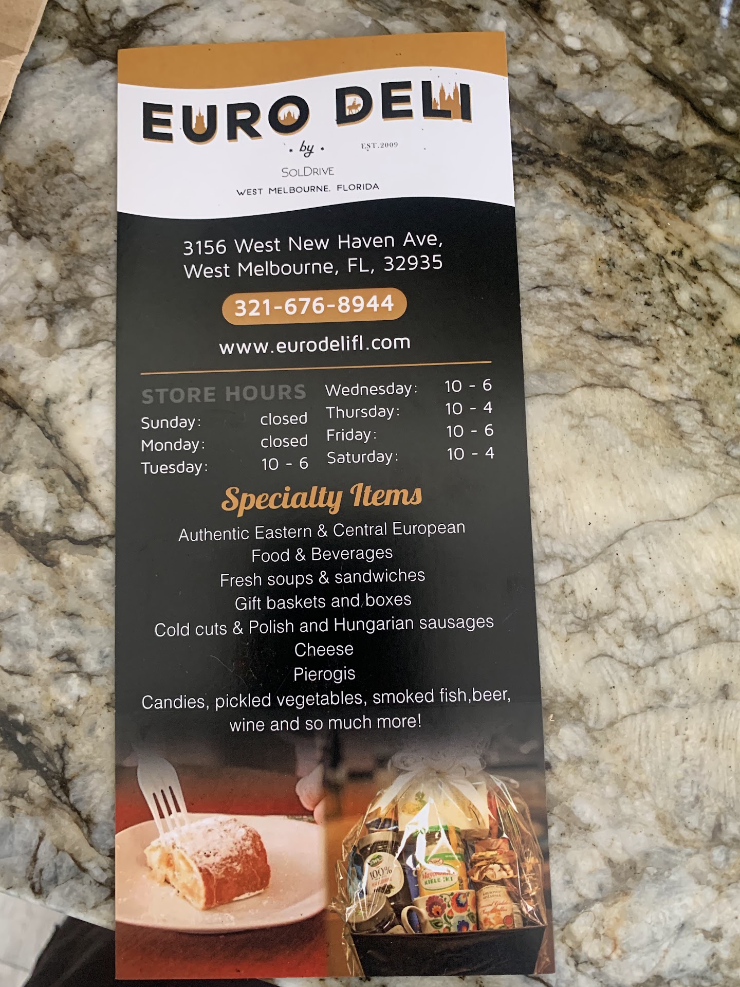 Read moreMy Mom & I absolutely love this place. My Mom comes all the way from Indian River County to spend time & money at this wonderful Polish Euro Deli. But the more we come, the more the service seems to decline a little. Again, we love this Polish Euro Deli & will continue to shop & eat here but we would like to see the service by the owner a little more accommodating / nicer & if we want to order a sandwich, be able to order a sandwich without an attitude or a "restriction" on the times we are allowed to order them. Again, we love this Polish Deli & will continue to shop & eat here so if your looking for Really Good & authentic Polish food, then you'll want to come...
