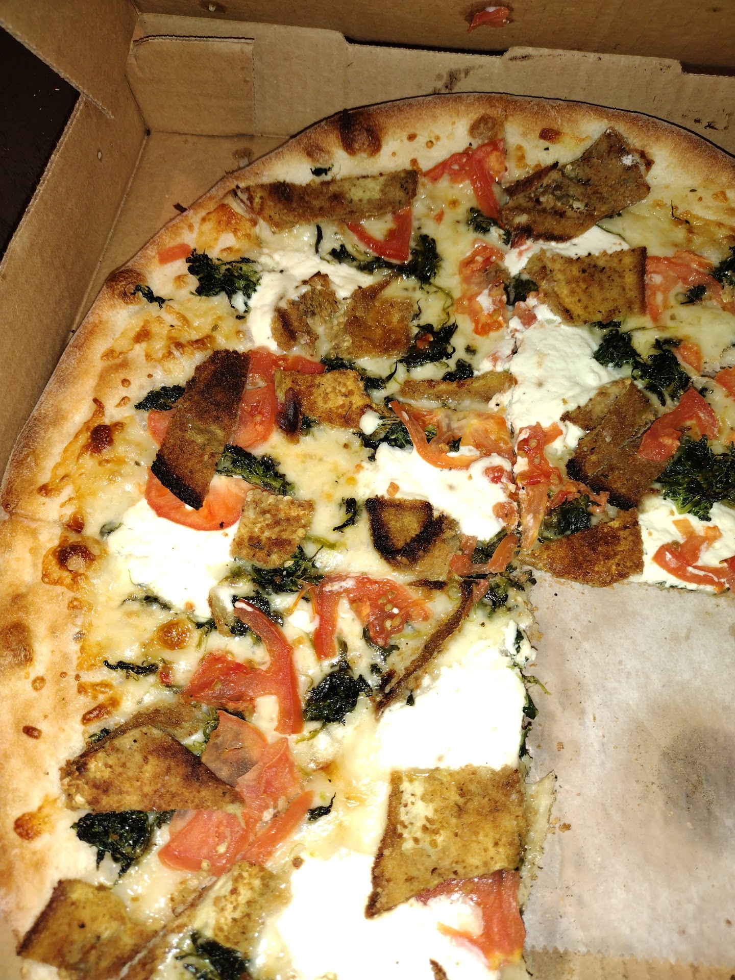 I bought a large Specialty Vegetable pie that was priced at the top of what a Pizza should cost but with quality it would be worth it. This pizza was not worth it, as it was soggy and watery in center and impossible to eat as pizza should be eaten(with your hands). To add to the water logged center was that there was very little cheese, so it didn't even taste good on a fork. I suspect the canned stewed tomatoes with thier high water content was to blame (first for me on a Pizza) did they run out of their usual tomatoes ? The crust was very good and cooked properly but hard to bake a pizza properly under water saturated stewed tomatoes. Where's the cheese? Paid over $20 for a large vegetable pie, so not worth it.