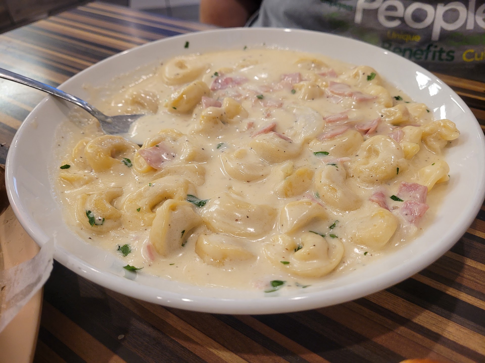 Tortellini alla Italiana - Tortellini had a nice bite to it, the sauce was creamy with a bold cheesyness boastong a light ham flavor. Overall Big portion.