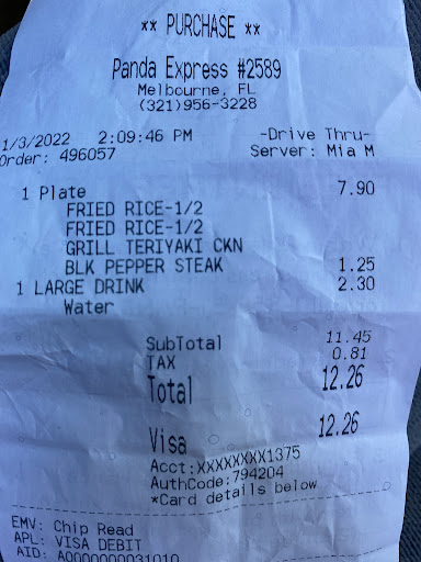 Read moreHorrible service multiple people not wearing masks the employees don’t speak English well and are confrontational when you can’t understand them to the point we’re they walk away after I told them they gave me the wrong meal the manager was not accountable due to them not being there don’t waste your time here at this location shame on you for treating people like there’s something wrong with them because you’re employees speak broken English also the whole not being able to dine in thing is old honestly it’s just laziness so no one has to clean the dining room literally every business in Florida is at one hundred percent capacity except this place $15 a hour yet no one can clean seriously hate the war these chain stores think they can do what they want Panda Express if you don’t want to open up then you should go to California we’re people have the same out look has you and you can stay...