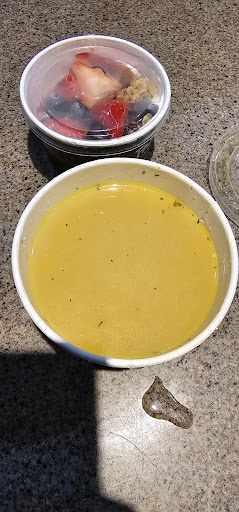 I had a cup, I think, of broccoli & cheddar soup and 1/2 caprese sandwich. The soup was excellent. The sandwich was very tasty. I could have sat down with strangers, but that's frowned upon in our society. I'll definitely come back, but I'll bring...