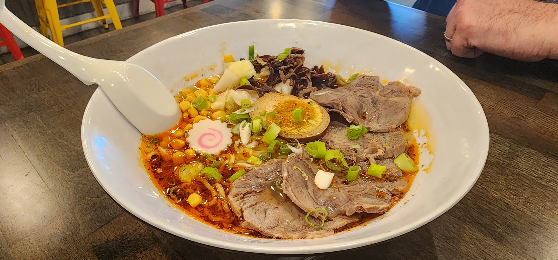 Read moreI've eaten at ramen food places in the Bay Area in California and loved it, so I was a bit excited to find this place here. I was a bit let down for multiple reasons: 1) The cost is way too much. A bowl of spicy beef ramen is 15 dollars, which is about 5 dollars more expensive than a larger portioned ramen dish in one of the most expensive areas in the United States. 2) The beef that came with the food was like rubber and wasn't very appealing. 3) The flavors were a bit lacking, so I had to add a few seasonings of my own. 4) The quantity of the noodles is too little. 5) The Boba drink I had is listed at Starbucks pricing, yet wasn't anywhere near as good. I had the coffee boba drink with crystal boba, and the coffee was absolutely terrible. I had to put coffee flavored ice cream and vanilla ice cream in it to make it taste better. Also, why charge people separately for the boba when the drinks are listed as "Boba Drinks"? I don't think I'm the only one on this last issue. There wasn't a lot of crystal boba that was put in my drink either.