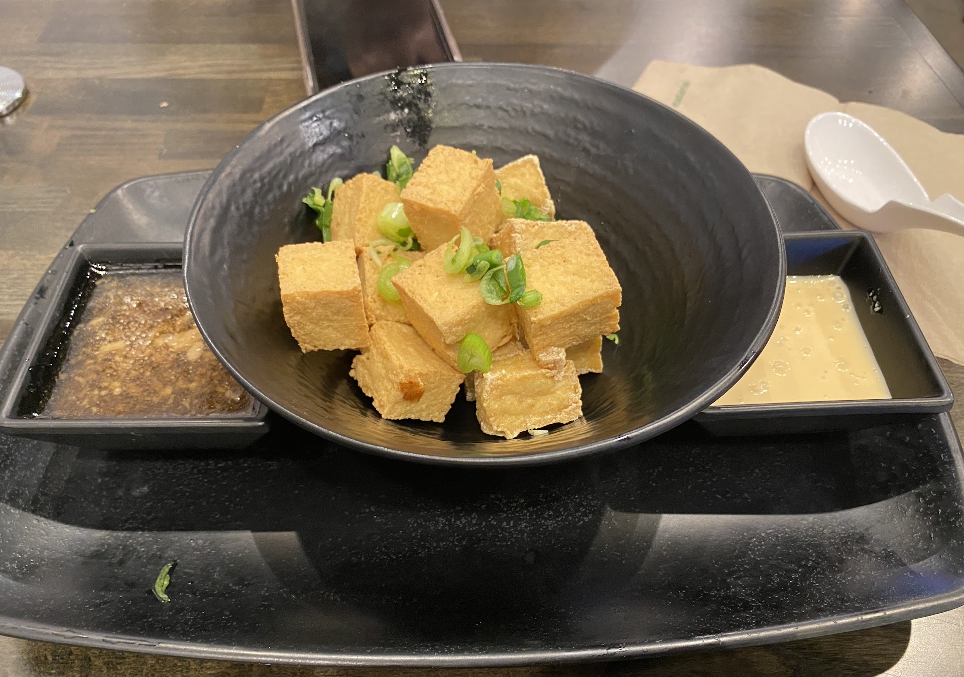 After having a few minutes to look over the menu, I was approached by the aforementioned Skyler. Did I mention she was exceedingly unfriendly and petulant? I get that we are all going through our own stuff, but you have to be an adult and leave it outside of your place of employment. I did manage to get in an order of the Shio Chicken and some fried tofu.