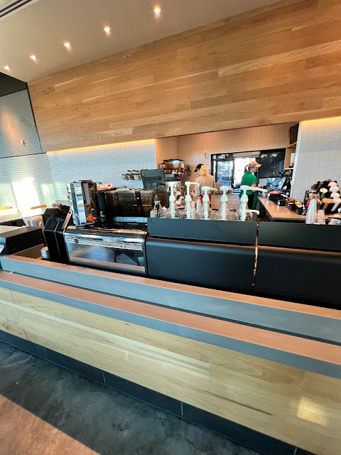 Read moreFirst and foremost the service was great .Big smiles and pleasant behavior. The Coffee cup sizes have shrunk and prices went up for a smaller serving? Ordered a tall peppermint mocha and a slice of banana bread 11$, no plate or silverware . This building is a huge metal and glass structure . It echos badly and the small talk of the guest along with the music boom throughout the large area. Greenery , decorative fillers or baffle boards are really needed to make it more cozy. On an individual preference-I’m really not into my food server displaying a nose ring … grossed me out. Food service workers should be wearing gloves and not touch the cash register bare handed while preparing food. I don’t normally go to Starbucks since they are anti-Law Enforcement but this was the only place within walking distance of...