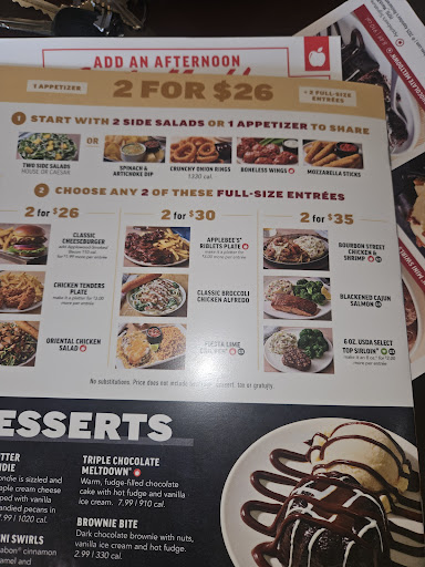 NOW with all that being said want to say this, I went to eat the two weekends ago with my husband I was so nervous because of all our past experiences but BOY let me tell you I was not disappointed and left very much satisfied! Immediately at walk in I was greeted and sat, our waitress came out shortly after that got our drinks and order in a timely manner, shortly after we placed our order our appetizer came out and not even 10 minutes later our food came out, AND LET ME say this is the first time in 2 YEARS I’ve had anything from applebees that actually had life in it, In the serving industry we all know food reaches it’s dead point after being under that heat and taste way different than freshly cooked food! She also kept our drinks full the whole time! Even seen the manager laughing and talking with guest everyone around us seemed to be enjoying themselves, SUCH a turn around from last year till now so glad I decided to give it another shot! Will...