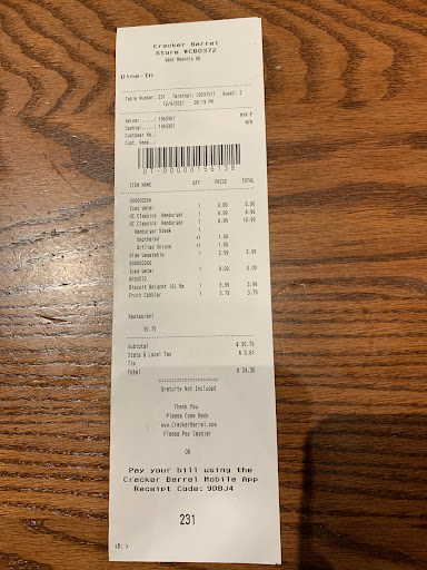 If you like Cracker Barrel and want to change your mind, this one would be a good one to come to. You will have a different perspective after the visit. There’s a dark side to this chain, and you will find it at this location. Don’t be deceived by the gift shop with the multitudes of trinkets and houseware and sweet candy. This is more of a facade for what seems to be a normal Cracker Barrel.
