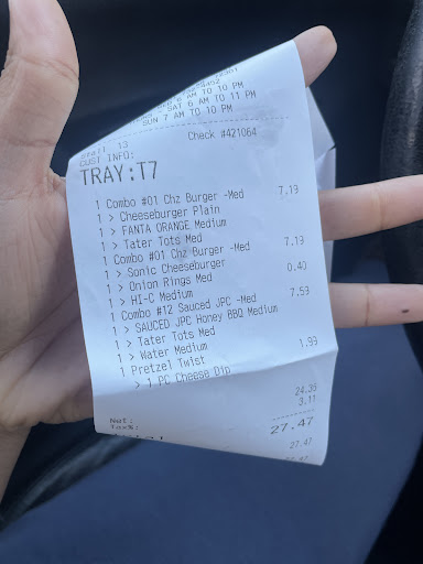 Read moreThe food that my daughter ordered was hot and fresh and accurate. The cherry limeade I ordered did not have cherries or limes in it. This is one of those things that bother me that probably shouldn't and are evidence of my increasing age. (Why in MY DAY, cherry limeaides had CHERRIES AND LIMES!" LOL.) Honestly I rarely go to Sonic anymore because the Cherry limeades were always my favorite and for some reason the fruits stopped going in as the prices went up. They're just not made very well and that is no reflection of this specific location because I complain about the same thing at the two closer to my house that we used to frequent. As far as this specific location goes, our car hop was very friendly and everything was accurate and promptly brought out. And regardless of the absence of cherry and lime, it was drinkable. Many of the Sonic's don't seem able to make that happen anymore so if I was going to stop at 1 again it would...