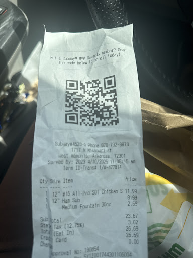 Read moreI was not greeted when I walked up to the counter and I needed to tell the clerk that I was ready to order at which time, the clerk pointed to the sign that says "order here" without saying a word. She had an earbud in and was talking on the phone while I was attempting to place my order. When she did finally speak to me to ask what kind of bread and cheese I wanted, she spoke so softly I needed to ask her to repeat herself. She also had no idea how a plain steak and cheese sandwich was supposed to be made. Old cheese, terrible service and the store deserves a star simply because the sandwich tasted essentially the same as every other subway sandwich I've had. So, if you enjoy subpar service and inconsequential subs, you should go to...