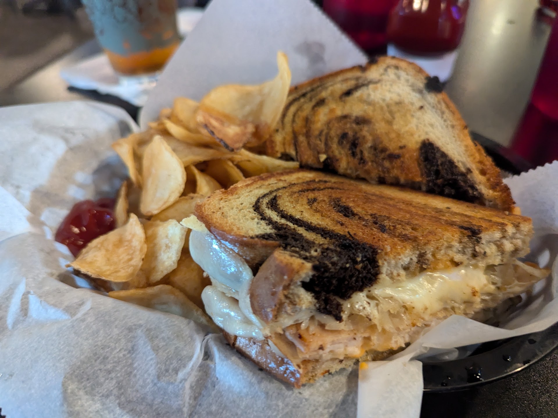 So I walk in. I sit at a dirty bar near the kitchen for 10 minutes. The bartender smiled at me several times on her way to do various side-work tasks. But she never spoke to me or offered service. About the third time I /thought/ she was finally going to, but she didn't. There was a takeout order sitting under the lamps the whole time. I wasn't there for that, but she had no way to know that.