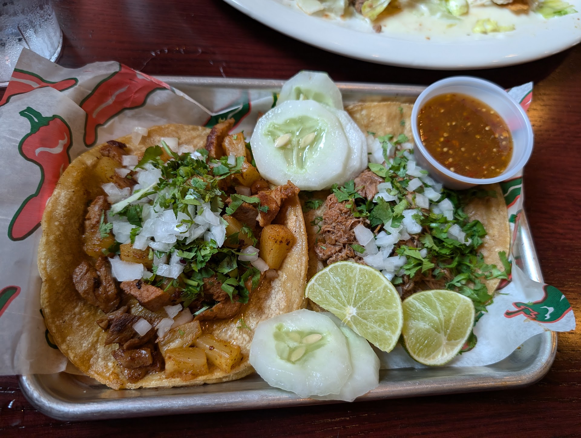 Read moreThis restaurant was clean and well decorated. We were seated immediately and had our drinks and food brought to us promptly. Server wasn't what I would call friendly, but she wasn't rude. She was very efficient as a server. However, I ordered a Carnitas street taco and when I took a bite I immediately thought this doesn't taste good and had a hard time swallowing it. I thought maybe it was just in my head so I took a second bite. I knew then that it wasn't me. That pork was rotten. My husband picked up a piece of the pork and smelt it and said it smelt bad too. When our server saw that I didn't eat it, she asked if I didn't like it. I told her that it was bad. All she said was "I'll take care of it." And then she walked away. She came back with our check and said that she took the taco off for us. No appology or anything. I know she didn't cook it but if I served someone rotten food, I would feel bad. My stomach was rumbling before we even left the restaurant. Side note, guacamole was delicious, and the birria taco...