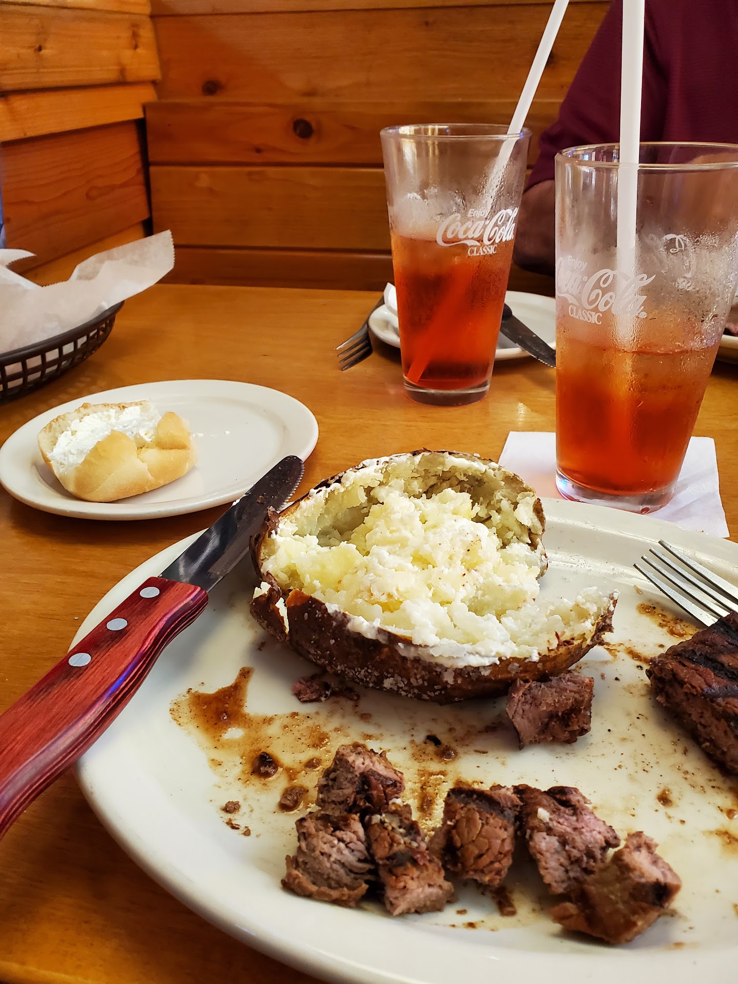 Read morePrime Rib piece was big but tasted "odd" to say the least. First couple bites had an odd flavor of bologna, followed by a mild unpleasant smokey flavor and then other bites that tasted like what Prime Rib should taste like imho. It was anything but enjoyable and I would not recommend it. It was served to me a unappetizing color of red and large chunks of fat that really turned me off quite honestly and did not look appetizing at all. The smokey flavoring wasn't good either, ruined the natural taste which imho again, is far superior. They over salt everything but isn't indicated in the menu. Like "buttered corn" as it is written in the menu. It is actually SEASONED (and strongly so) buttered corn that I wouldn't have ordered had I known. I tried it, didn't like it at all. Manager said that's just the way they cook things which is a ridiculous answer. Same with my salted potato. No mention in the menu, and waitress never asks if you want it salted or not. I ordered Prime Rib with baked potato but I'm supposed to know somehow all by myself that the potato is salted with no info by the waitress or on the menu. Same thing happened last time we were there about 3yrs ago or more. I've had 4 bad experiences in 6 total visits over the years but no more. Manager said they aren't trained to ask (lol wtf) customers if they want salted potato or not. They should. So easy to do and now this is the 2nd time my entire meal has been ruined by excess salt liquifying and salting everything on my plate that I don't want to be salted. This is my last visit, this place is a joke really, and for the life of me I can't figure out what people like about it. My wife's food was also over salted and she didn't like hers either. My wife's Pepsi had too much syrup and was heavy and too sweet. I ordered an Old Fashioned but it was terrible and made wrong ugh - tasted like 3 shots of Makers Mark with ice and a weird looking cherry (?) at the bottom when it is supposed to be garnished with an orange peel. If this is their version it is awful. Manager gave my wife and I a free appetizer which was nice but unnecessary because we won't be going back. Spent $74 but it wasn't worth it. Very disappointed...