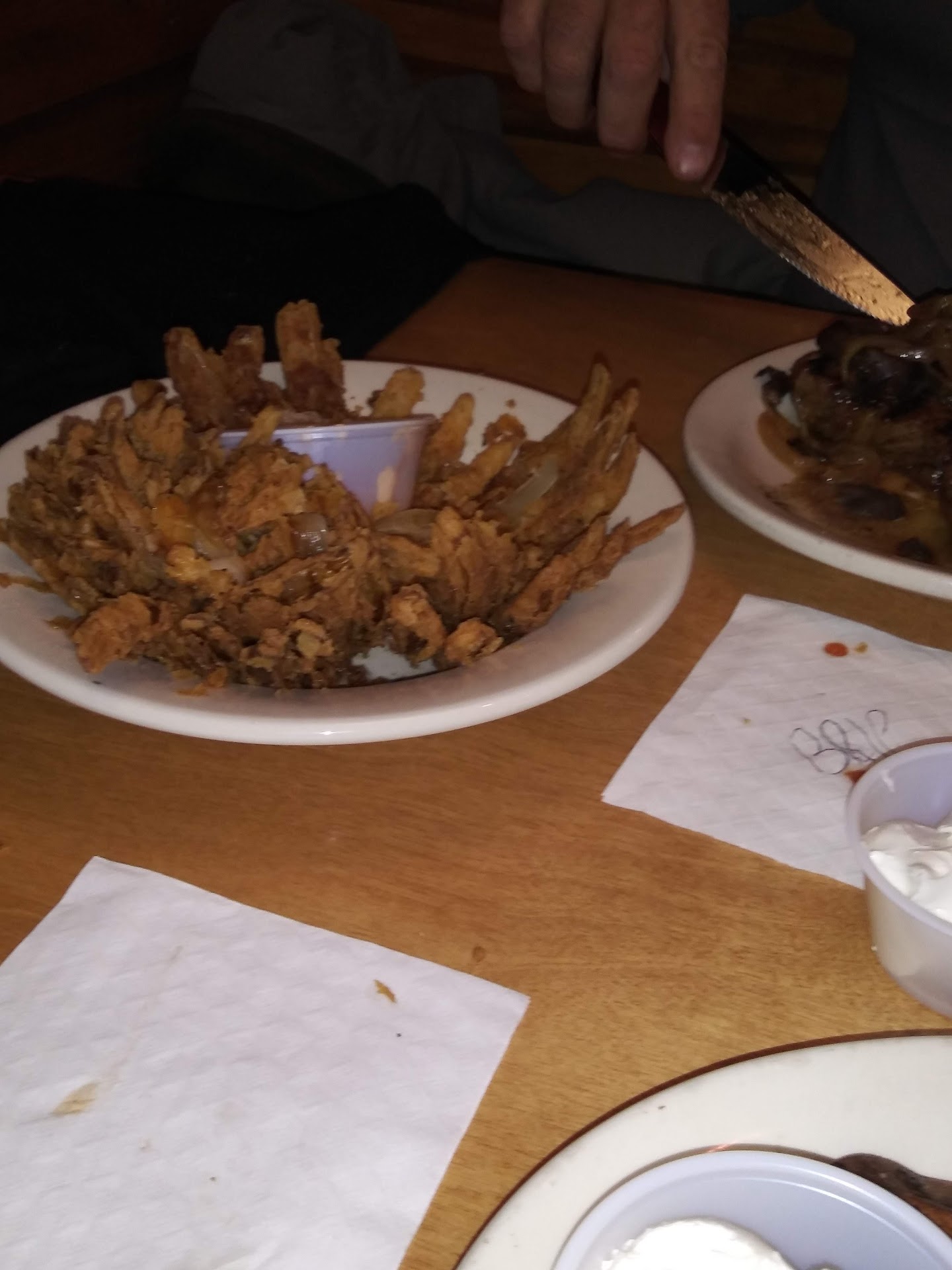 Read moreI attempted to share my comments directly with Texas Roadhouse first but their customer satisfaction survey did not provide sufficient space for the pertinent details. I ordered online and received confirmation my "TO-GO" order would be ready at 8:17 pm. At 7:51 I received a text "Thanks for ordering. Text the word "HERE" after you park. Text STOP to opt out TXRH" At 8:19 pm I texted HERE and immediately received a message "Sorry. Your order isn't ready yet. Please stay in your car and keep your phone handy. We'll text you when it's ready for pick-up. - TXRH" No worries I thought, that happens. at 8:40 I sent a text "Hi. I was expecting my order at 8:17. Just wanted to make sure everything is OK - Thanks." No response. At about 8:49 I went to the "TO-GO" window. The young lady asked my name and retrieved a bag from among three that were sitting in front of her. "It's here, sorry"" she said, To be clear, I think she was. She asked if I needed utensils (no thanks) and to review the contents of my order (no thanks). I took my order expecting the Cactus Blossom to be colder than I like and was not surprised when it was. The House Salad was fine. I got my extra dressing and rolls. Ease of ordering 5 stars; Completeness of order 5 stars; Portion size 5 stars; Appearance and taste of food 1 star (the mushy cold onion REALLY hurt you here); Customer service 1 star (assuming 0 stars would mean I hadn't been served at all). At 9:04 pm I received the following text "Your order is ready. Please follow the signs to our TO-GO pick up area. - TXRH". Use of technology