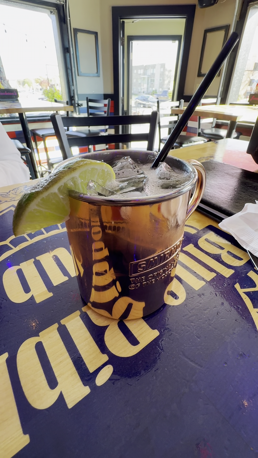 Read moreWe had to run some errands today, and I couldn't think of a better time to go exploring new places, so we searched Google map and spotted a small bar in the area we were going to be in, so that's how we found Jacksons blue ribbon pub, it's an excellent corner location with outdoor seating on the patio out front, we decided to sit inside, the interior was well lit, and they have these half garage door style windows that open up and just make the space very cool, I ordered the brisket, and for my side, I chose the sweet potato fries which were perfectly cooked, the wife ordered a Reuben and French fries, we were both happy with our choices, yes I would go back, I got the pineapple mule so maybe I will try one of the other mules they offer, the copper cups they serve the mules in are very cool and I wouldn't mind having...