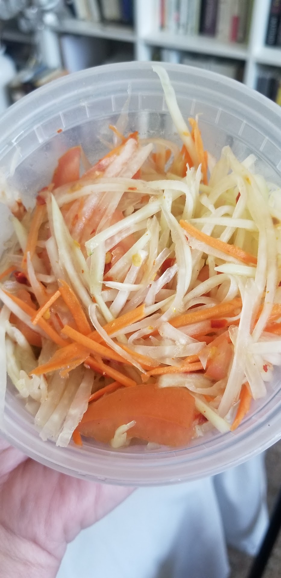 • Beef Pho $12 - Noodles and veggies were packed in separate 5x5 styrafoam container. Broth was dark and cloudy, no pho flavor other than salt which I had to add more water to dilute the saltiness. Thick beef slices that were tough and overcooked. • Papaya $7 - Came in a small 16oz container, tasted of salt/fish sauce and lime; nothing special about their homemade sauce and didn't come with cabbage either. • Crispy Squid $8 - Came in the small 5x5 styrafoam container. Very small pieces. Not crispy but the flour texture is comparable to sweet and sour chicken. Not worth the price. • Ordered the side fried rice $5 and eggrolls $4. Both bland and tasteless.