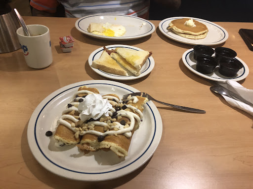 Read moreGoing to take you on a step-by-step of my experience tonight at ihop.. First when we walked up to the counter the manager didn't know who was next to take the next customer. After all of them discussing it a bit I got a little annoyed because who cares whose turn it was, just help the customer. I can't remember the woman's name who was our waitress but she didn't smile or have a positive attitude. I ordered buttered toast and an omelette with no onions. On some of the food they were out of certain ingredients but this was not her fault. Toast had no butter. When I got my omelette it did have onions, the little diced ones you really can't pick out. The pancakes were crunchy and dry. She checked on us a few times throughout the visit and at the end when she was handing me my check was the only time she smiled or had a positive attitude. I asked for multiple to go boxes since we barely touched our food, she brought me back less than I asked for. So I had to cram everyone's food into two boxes. When I went to check out I had to wait a few minutes for someone to come out to the counter, employees passed me but didn't say anything. Not even a "someone will be right with you" luckily the woman at the pay counter was friendly. Her attitude was the best part of my service... no offense but that...