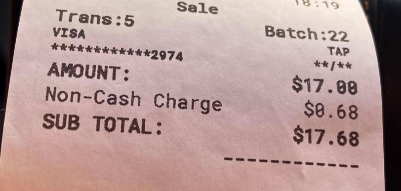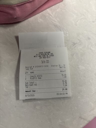 A waitress named Bellis eventually approached me, and I ordered a fried rice dish. After placing my order, I paid at the counter. That’s when I noticed on my receipt that I had been charged an extra dollar for a plastic bag. I explained that I brought my own large reusable bag and didn’t need a plastic one, but Bellis told me the charge was actually for the plastic container my food came in.