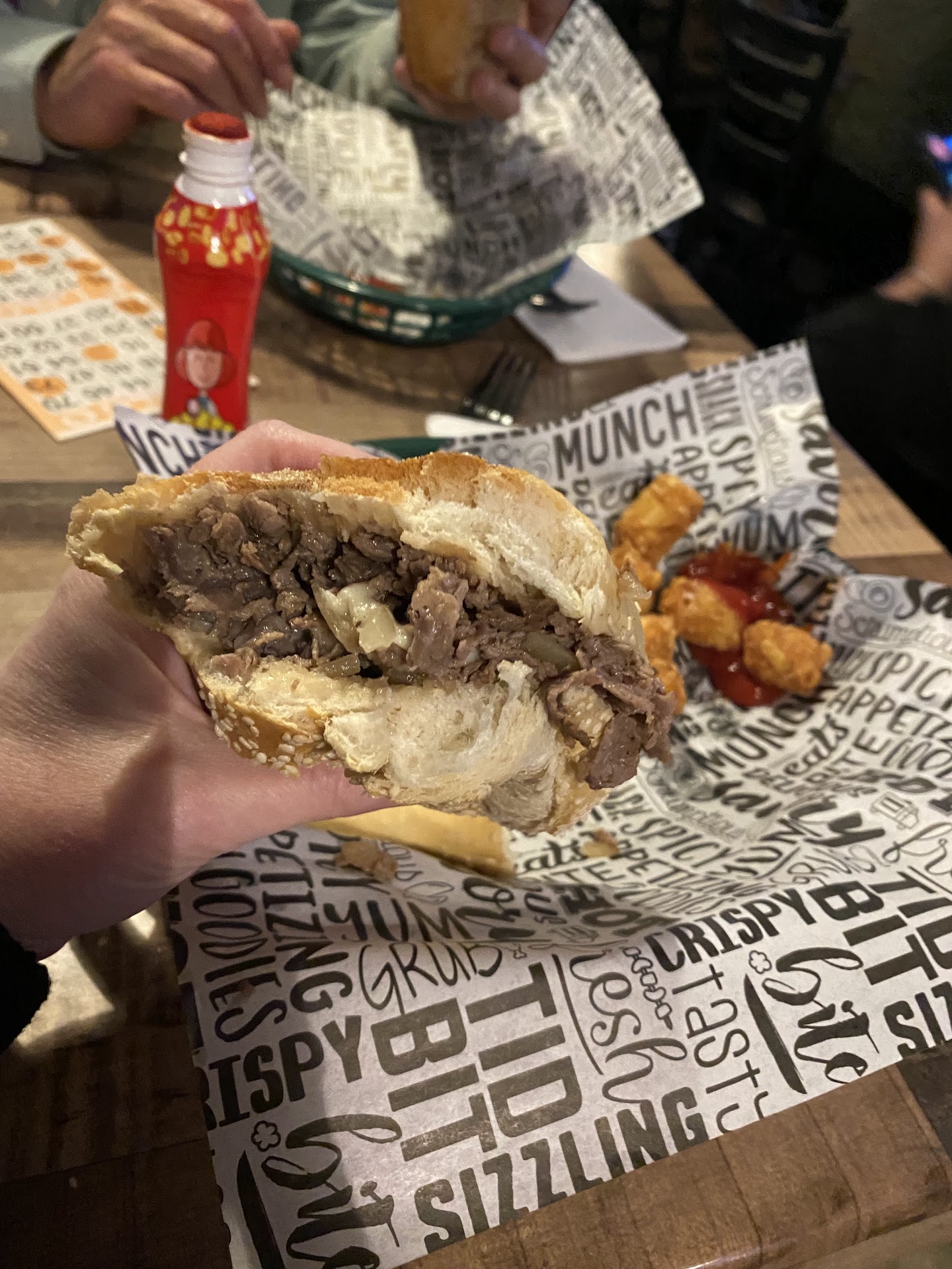 Went on Friday night. Sat at the bar. Place was moderately busy but well staffed. Ordered a beer, cheesesteak and tots. After waiting 45 minutes asked the bartender to check on my food. Took another 15 minutes for sandwich to come and they brought me Pulled Pork, not the cheesesteak I ordered. Tots did not come with sandwich. Asked about them and they came 5 minutes later. I ate the pork (which I never normally would order) as by now I was too hungry to wait another 20 minutes for a cheesesteak. Came in for a quick beer and a cheesesteak. Took me 1.5 hours from when I walked in until I left which was as soon as I finished my food. Saw bartender entered my order incorrectly when check came. But there is still no excuse to have to wait 1 hour for a sandwich that takes 5 minutes to make and they were not that busy. Absolute worst experience ever and I came home with a stomach ache. I would give it negative stars if I could. Staff was pleasant though and they did give me a free beer as they saw how annoyed I was having to wait 1 hour for a sandwich. Bartender did attempt to make some lame exuse for why food took so long. I should have paid for my beer and left rather than wait that long for food. Complete fail...