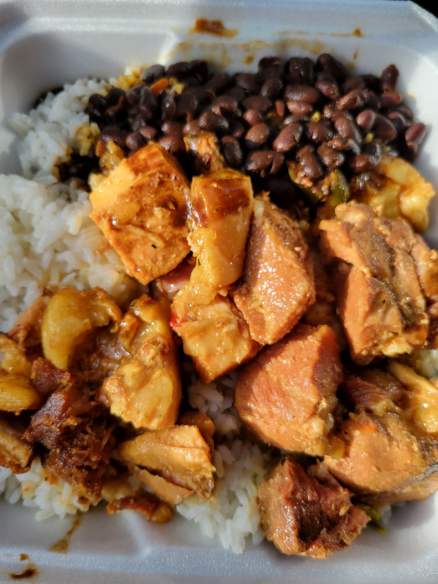 The platters are huge and the prices are reasonable, under $10. The owner is extremely nice and helpful and their rice/beans/stewed chicken dish is TO DIE FOR.
