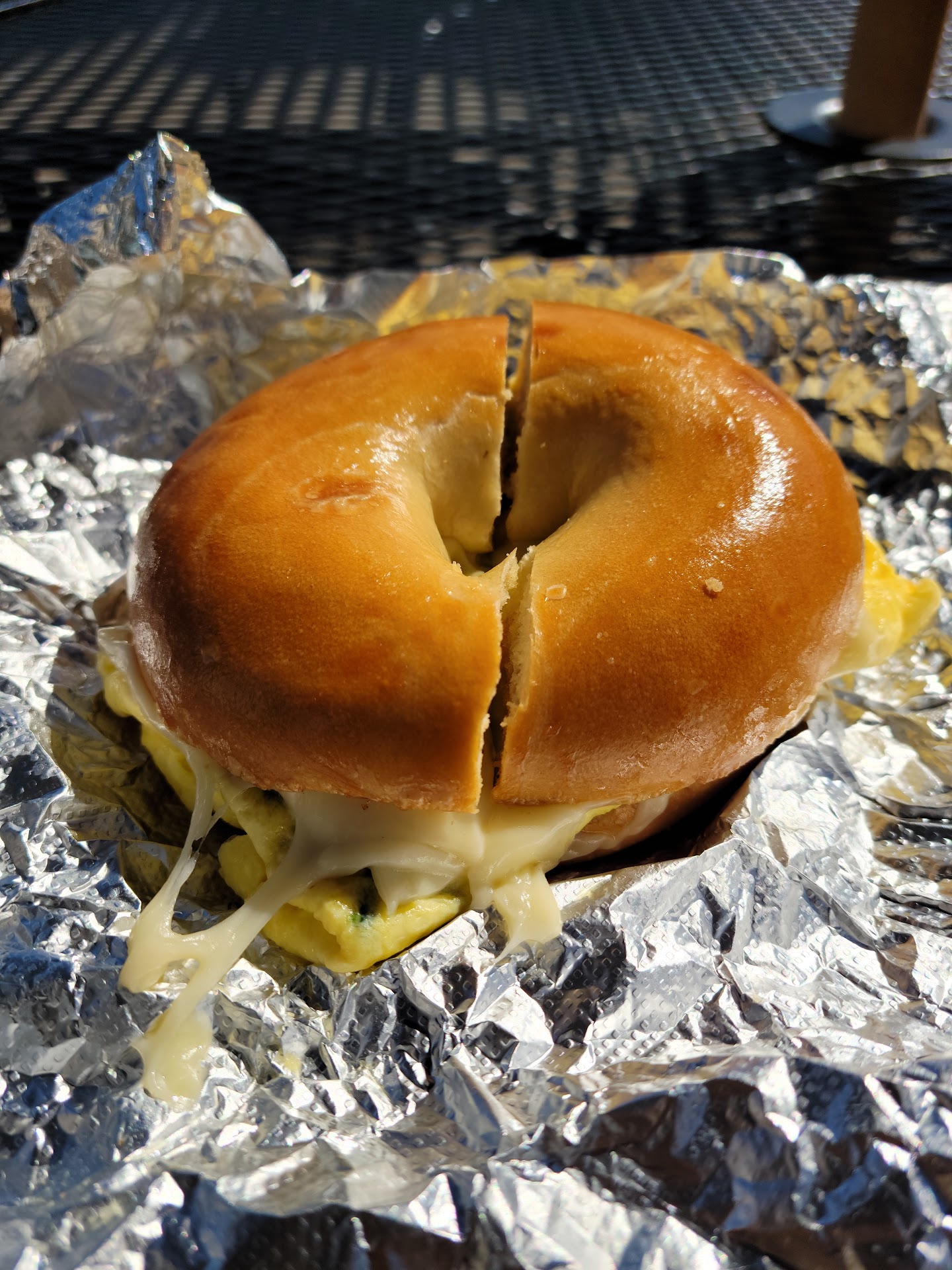 And then you bite into it and you realize it is not crustyāeven after being toasted. And then you look at your OJ and see the problem. This place is a corporate clone of Einstein Bagel. Another place with friendly people that serves pretty good coffee, but that is about it. To sum it up, you want an air filled, frilly sub-standard bagel with friendly people and good coffee this is your place.