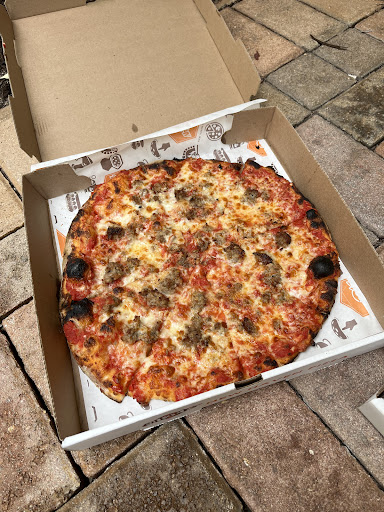 We got the cheese first, excellent crust and the sauce is spectacular! I recommend ordering with extra cheese next time. The Margarita pizza arrived in a few minutes and it was very good, but needed more of the mozzarella cheese, since the ratio of sauce was excessive. The sausages are real sausages (not crumbled pellets) but I prefer sliced. Don't get me wrong, both were excellent pies and I wish they had a location in Miami-Dade county!
