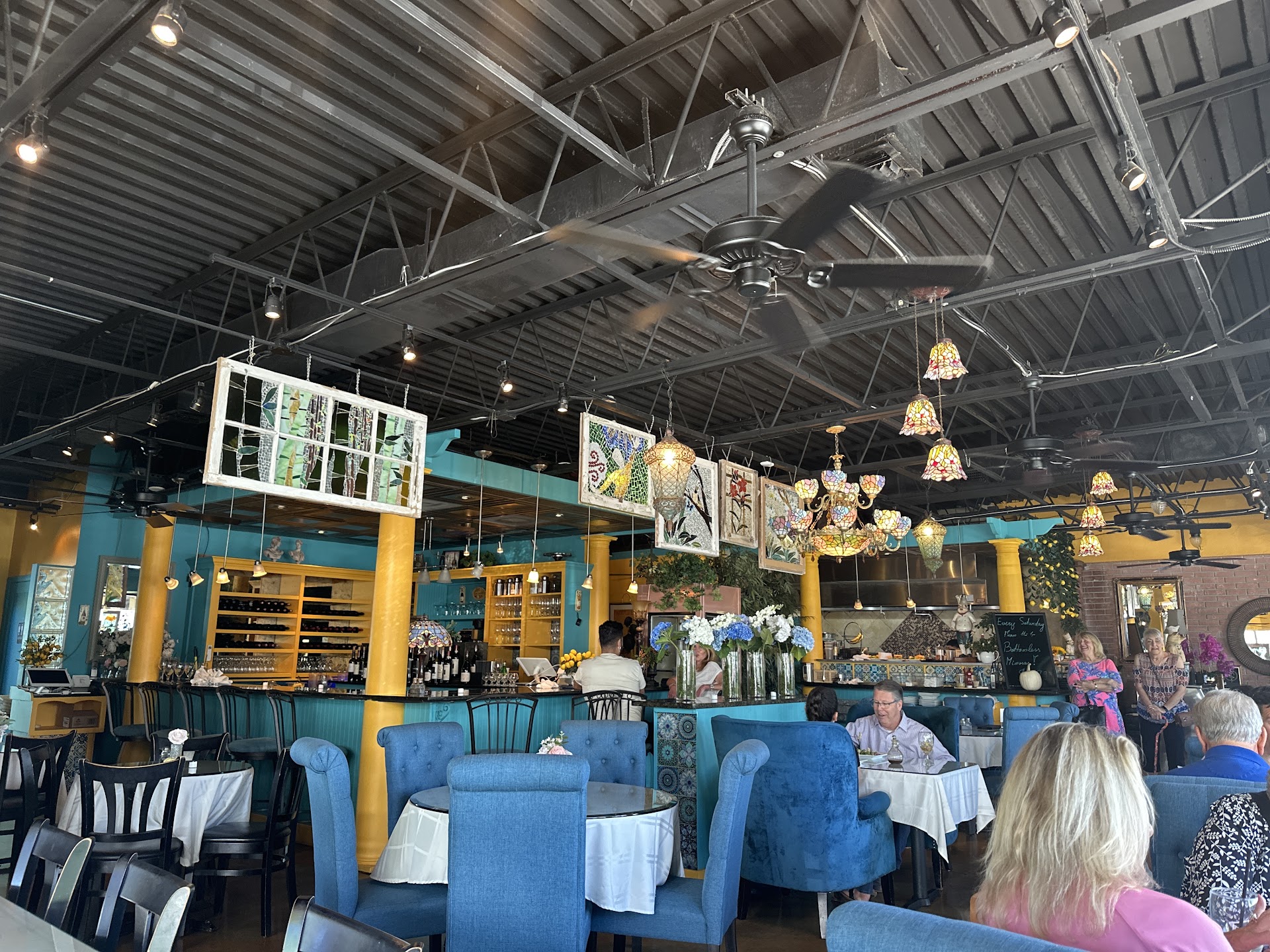 Read moreOMG! I canât believe I moved back to South Florida a few years ago and today (Monday) was my first visit to Belle & Maxwellâs! If I could give it 10Stars I would! It is Soho chic.. trendy Palm Beach casual with a beautiful outdoor patio! I would go just to see the stained glass artwork, beautiful mirrors, eclectic tables and chairs and amazing chandeliers and lighting fixtures. I havenât even gotten to their amazing menu choices and beyond delicious food! From everything I have read and all my friends they are known for their Quiche! I was determined to try it! Todayâs quiche was zucchini and cheddar! Perfect! It comes with a side of greens with tomato, a piece of fruit and parmigiana fries. Really! My sister ordered the side of parmigiana fries. Please refer to my photos.. Absolutely the most delicious quiche Iâve ever had. I am a great cook and make a killer quiche but this runs circles around mine. It was light and custardy.. and full of flavor.. the greens and tomato were amazing with so were the fries.. the fries are like having a delicious crispy sliced baked potato encrusted in parmigiana. I ordered-the Riesling wine which was cold and perfect! The food came out piping hot and delicious! The service was excellent! They were busy but still adhering to all CDC guidelines including social distancing. The outdoor patio was busy as was the dining room and the service was still excellent. Their menu has some great salads like pear and Gorgonzola.. warm goat cheese, flatbreads, sandwiches and unbelievable soups like lentil! I was too full for dessert but will definitely try the coconut cream pie or ricotta cheesecake next time. They have a great selection of desserts, espresso, cappuccino etc! A great happy hour and beautiful bar area! Parking is street side and a small parking lot... What can I say but this is a fabulous restaurant and Iâm a fan! I...
