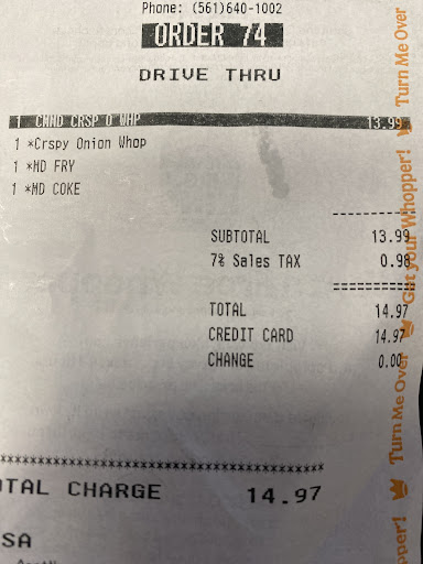 Read moreThis was the most chaotic drive thru experience I've ever had at a BK. The server was multitasking, managing others, making mistakes, and ending the order I was done ordering. She wouldn't listen carefully in order to enter accurate information. She was answering questions in the background with the mic on in another language. We had to fix a couple noted issues at the window upon receiving our bag. The chaos in the kitchen alone made us assume the rest of what we ordered was in the bag and enough. We got home highly disappointed to find missing items in our bag with not enough food for the whole family. Moms are already struggling moment to moment with multiple opinions thrown at them by the tiny humans we get to raise. The last thing we need when we give clearly communicated instructions to other adults is unmet expectations. This Burger King is across from PBI airport. This location has the potential to represent our city well. So training the team to be less embarassing for Palm Beach would be an ideal goal. I understand its a fast food restaurant and expectations should be low. However, your motto says the client rules. That basic expectation was unmet. As a resident of this beautiful city, I'm embarrassed this location serves the way they do....