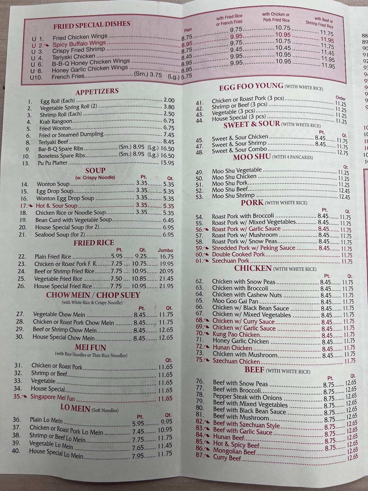 We ordered crab lRagoon that had no crab in it very cold and mushy not crispy like normal ones. Fried Wantons had NO MEAT inside them were cold and mushy as well.....the house Rice, PLEASE DO NOT ORDER , 5 min after eating it I was rushing to the toilet. Called them was put on hold for 25min and hung up on . Called back and they were very rude telling me nothing is wrong with there food.....not only is something wrong with the food there is definitely something wrong with the ppl that work there....rude, and obnoxious. Food inedible. Do yourself a favor and go...