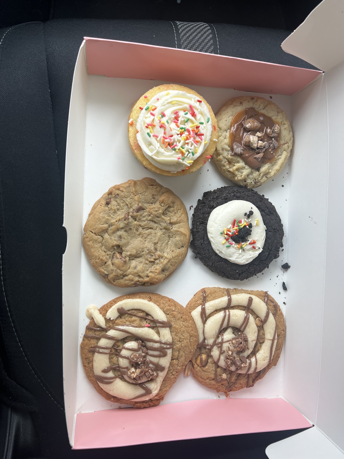 Read moreThis was probably my worst experience within a food industry just because of the customer service. I walked in right after I said I was here online I checked in. I walked in. No one greeted me. Nobody asked for my name. Nobody asked if I was picking up. I went straight to the pick up counter and waited there for 15 minutes just for someone to acknowledge me 15 minutes after while multiple people walked in they were greeted they were asked their name, and they were given their cookies immediately after now still waiting after those 15 minutes, I so happen to have a friend walk in and she asked the lady boxing the cookies up for me if my cookies were ready when she got her cookies, she left the girl boxing up the cookies for online orders very rude and disgusting and nasty attitude she had little orange and yellow hair. The way she held those boxes of cookies below their her waist to bring it to the customer was disgusting. You could tell just by the way that she carries herself making those cookies and she hates her job. I think every single employee in that store today should learn what a good customer service is because what I saw today. It definitely was not….. the picture I added is the cookies I waited over 15 minutes for. I definitely expected a better experience and cookies that actually...