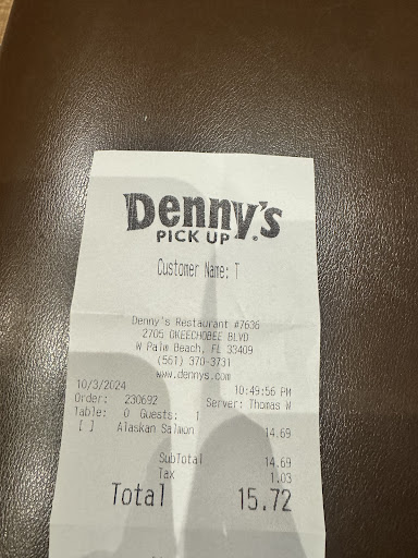 Ā Ā Ā Read moreMonday, August 11, 2025 10:40:16 AM Usually my fav ... today, was a lot different! SuperSlams are $9.99, we had 2: 1 scrambled eggs w cheddar+turkey bacon + 1 w eggs over easy + pork sausages+bacon! Danyelle S, our fav server greeted us as we sat down. Drinks brought over, and boom ... our Slams were served, quicker than ever!! We were both amazed, and laughed! We'll, the hasbrowns were overcooked, and I asked for 1 to be redone softer, no problem! As we drove home, we both began to get bathroom urgencies ... once in the house, Thank God for 2 bathrooms ... the food had both of us in pain, + the next 4-5 hours were filled with painful bathroom visits, and exhaustion š©. I called Dennys, asked for manager, told she's cooking a very large order, and asked if I could call back ... I said OK. Asked if Danyelle was still there, was told, no one by that name works there š¤ ... I checked the reciept, server Danyelle S. August 12, 2025 2:10 PM Called Dennys asked for Jennifer, manager: gave her our account of events, asked of she cooked on Monday, after a few moments, she answered NO! She offered to call her DM, and see how he wants to handle our situation, and she'll call us back ... today is Saturday, August 16, 2025,...