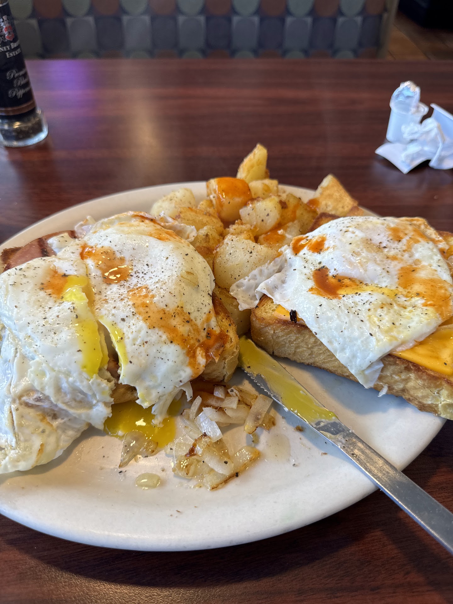 I've been going here for over 20 years and just now writing a review-geez! I have to say this family owned and operated restaurant is a good standard breakfast joint! The food is decent and not as expensive as a couple others nearby. If I want the standard "breakfast special" for $4.95, I come here. Can't be beat, however, watch the up-charges, the $4.95 breakfast can go to $11.00+ fast! (Hence the 4 stars.) Update: Down to 2 stars...I brought friends here from out of town and one friend's hash browns were cold and not cooked through. Another friend got something other than what he asked for. I got a club sandwich which was sub standard. Unfortunately the tomatoes looked like they were cut the day before so they were not fresh (you know??). The turkey was pretty bland, the bacon was overcooked, too much mayonnaise. It's amazing that you could screw up a club sandwich. Instead of the fries I got the potato salad which was yuck. Not quite sure how to say what it was like but guess it was out of a tub. The reason I give it 3 stars is because they do have a really good breakfast and the servers have been there for years and really know how to get your food to your quickly. I just don't think I'll be back here to eat anything other than breakfast which they serve all day....