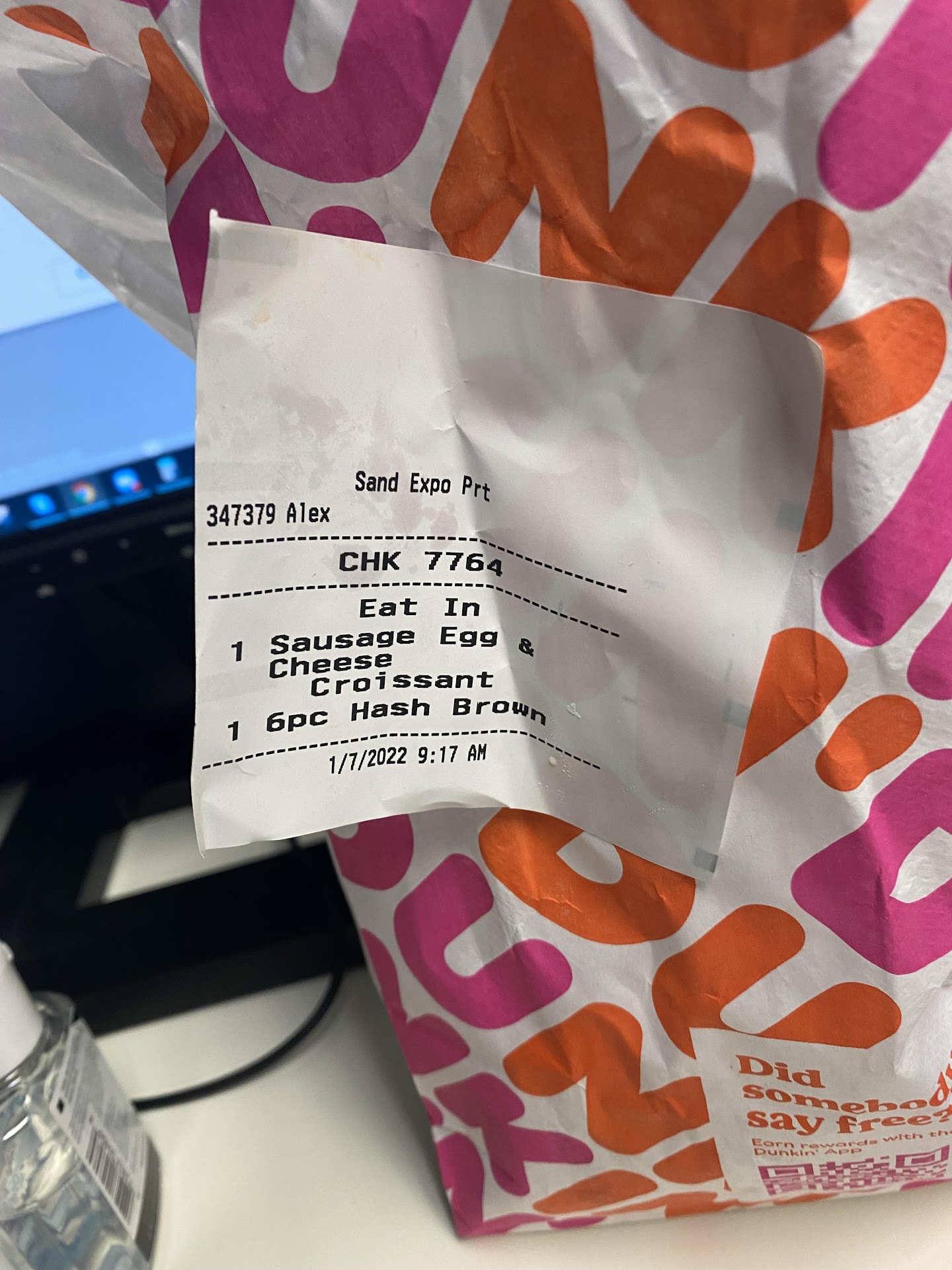 Read moreWhen arriving at Dunkin Donuts we notice the staff seem to be a little bit off than usual. I have come to this Dunkin Donuts for the longest time never had a bad experience before till today on 1/7/2022. Eddie the staff member seems to have a little bit of an attitude when taking the orders from the coworker and me. While I was waiting on my food my coworker made a mistake with his food in which he needed to correct. The staff was upset of course which I understand till they started getting nasty to me because I question my sandwich. So I am going to add an Image for Eddie and his staff to show them maybe instead of getting nasty to the people that come into your store you should put the order on the bag correctly so it shows what the customer said they wanted with their sandwich. I ordered a sausage and cheese croissant… so the store owner tell me what my Sand Expo Prt...