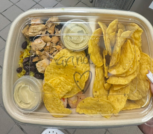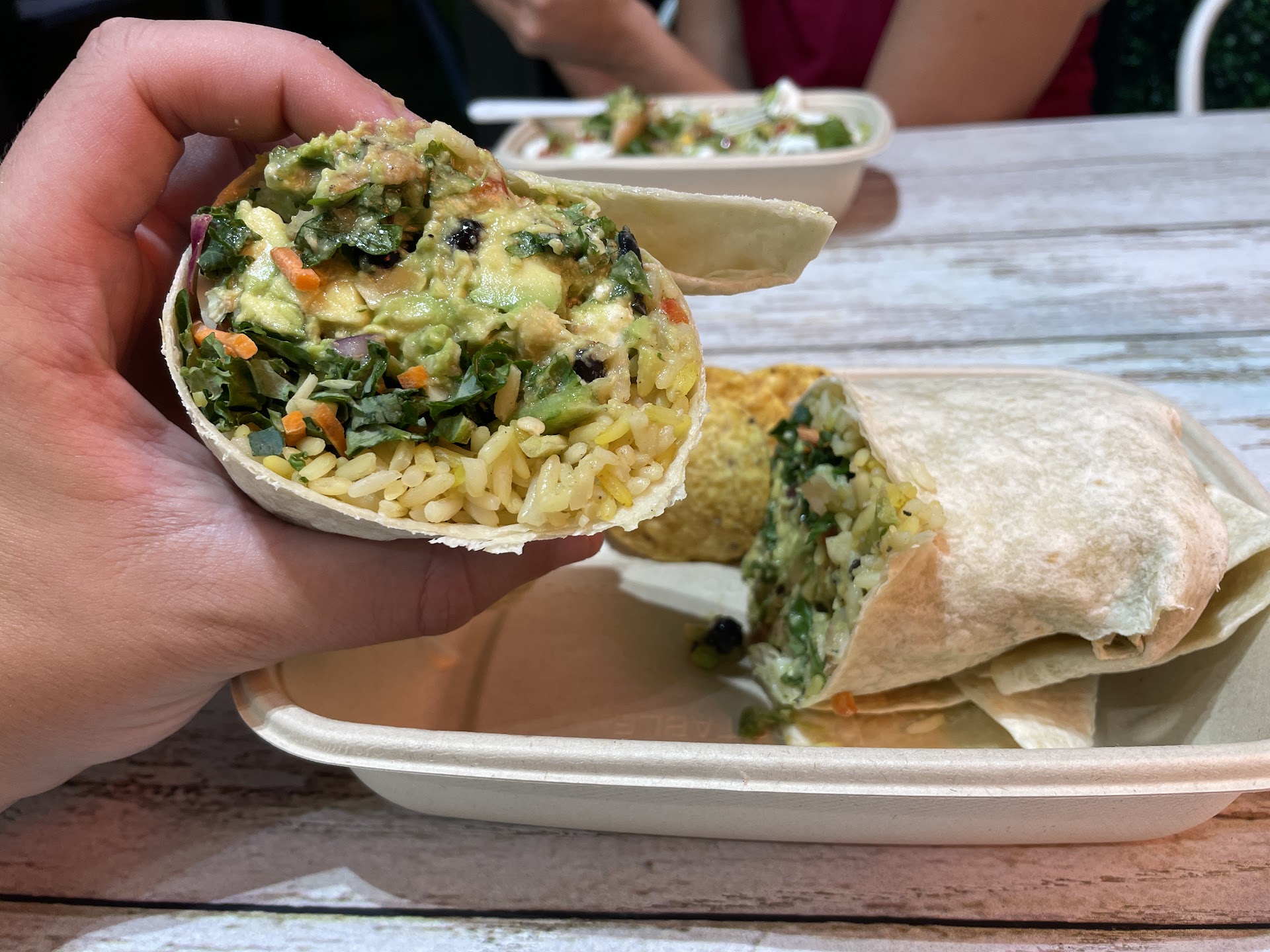 I got a wrap with a base of rice & mixed power greens, āOGā guacamole (avocado mixed with onion, cilantro, black beans, bell pepper, garlic, jalapeƱo), and chicken. Very tasty.