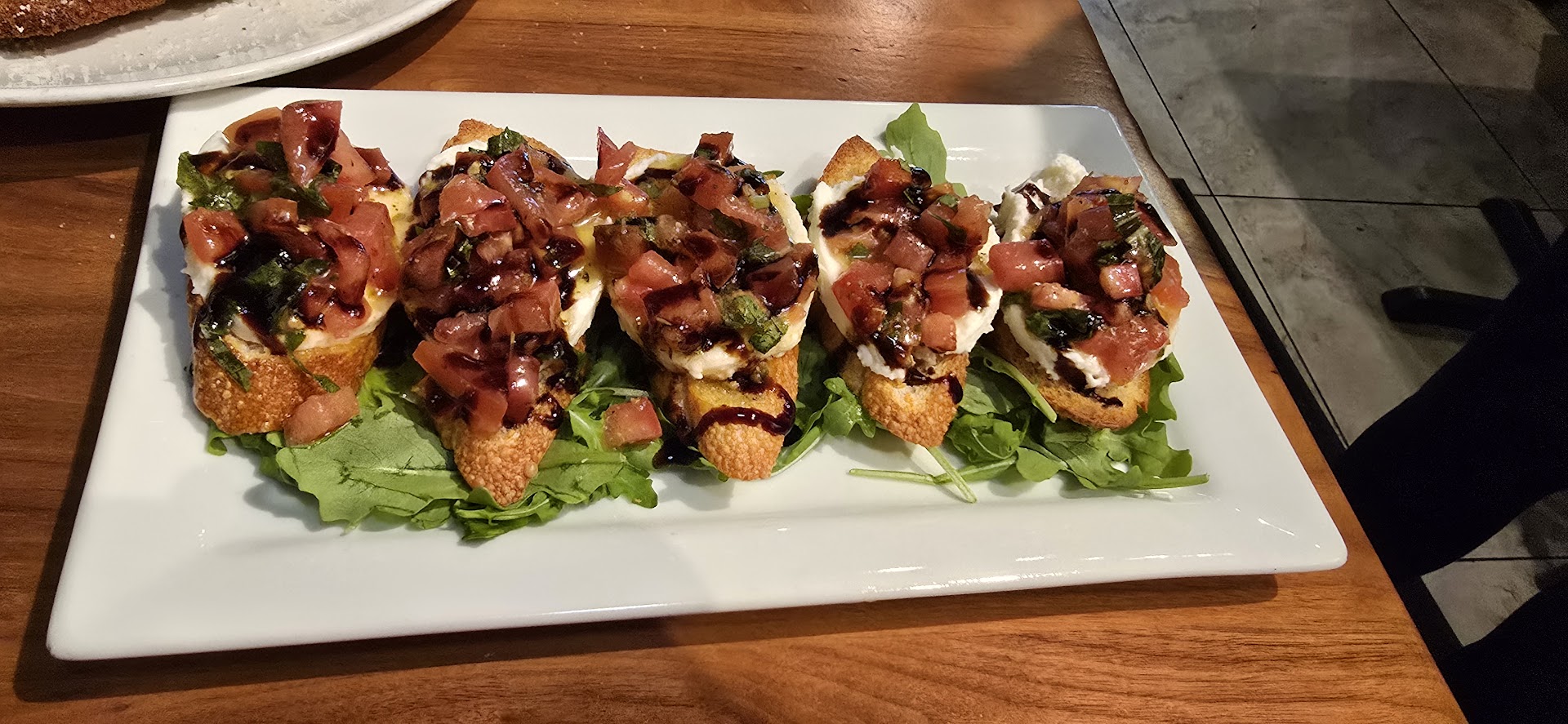 We walked in and were greeted by the most friendly and enthusiastic associate named Anna. I told Anna that this was our first time visiting and picked her brain about what her favorite dishes were. She DEFINITELY DID NOT DISAPPOINT!! By the end of our conversation, she came up with an appetizer (pictured in this review) that wasn't all the way on the menu, although I urged her to add it because of how spectacular ot turned out. Anna took the Bruschetta and added fresh mozzarella and drizzled balsamic glaze on top......WOW! YUM! We ordered Rigitoni with vodka sauce and the Pollo parmigiana (chicken parm), and both were spectacular, and we would certainly order them again.
